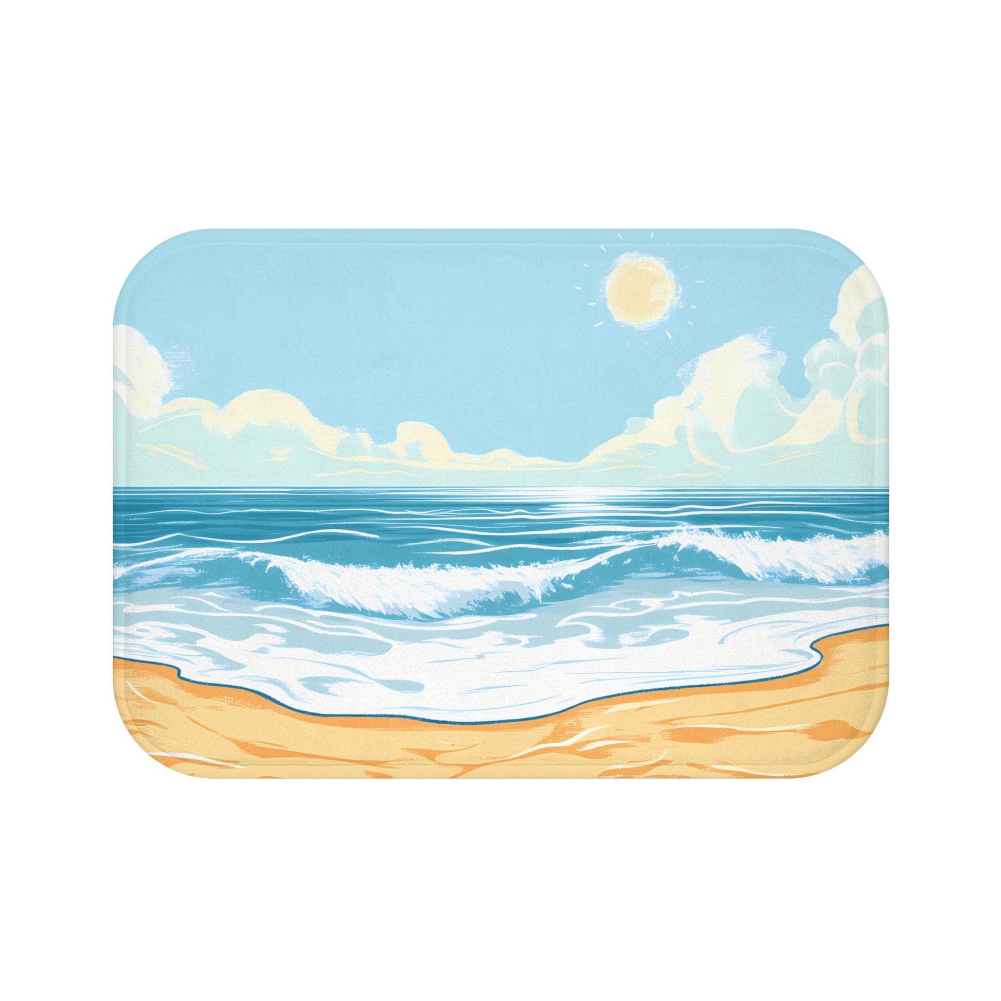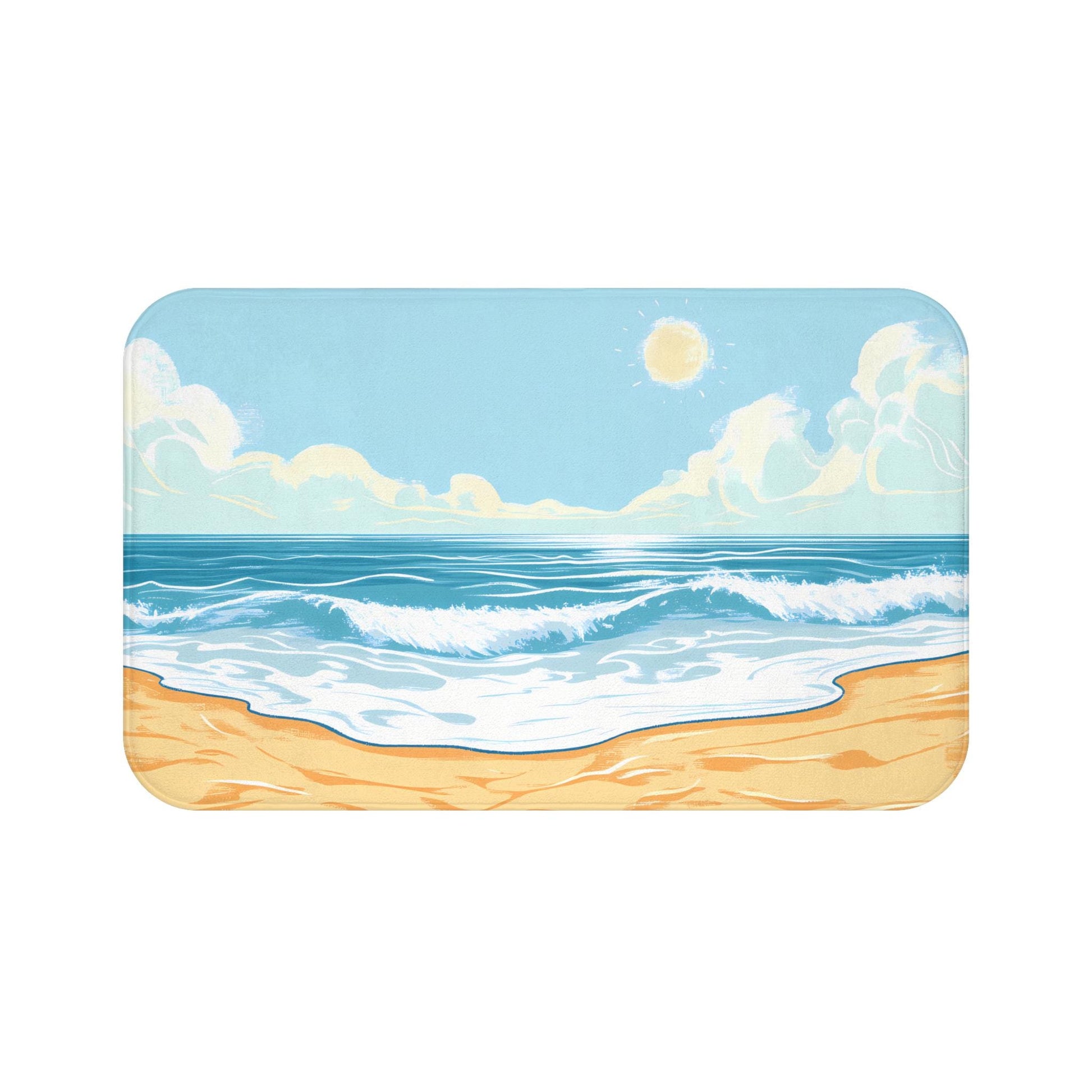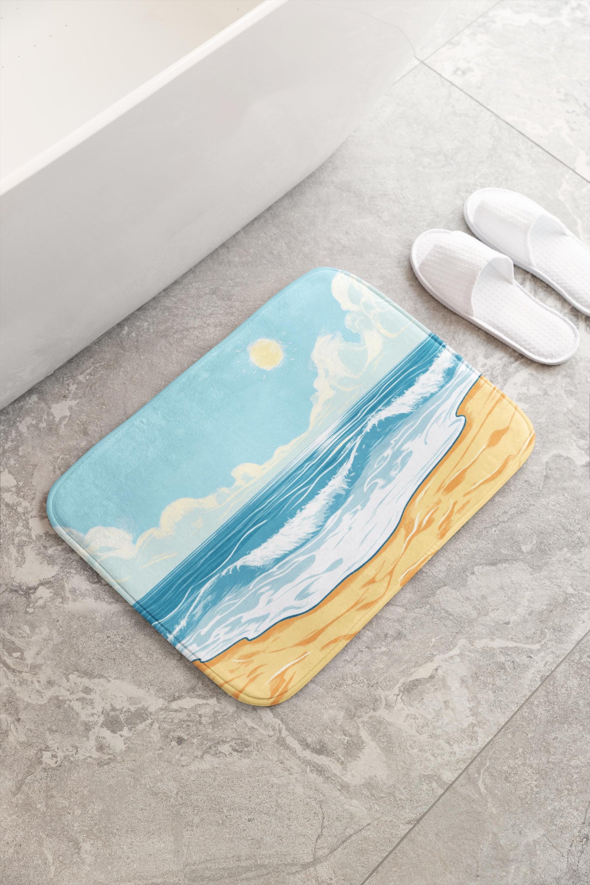 Bring the calm and beauty of the beach into your bathroom with this soothing bath mat featuring rolling ocean waves and soft sandy tones. The gentle blues and warm neutrals create a coastal escape, perfect for beach lovers, summer vibes, or nautical-themed bathrooms.