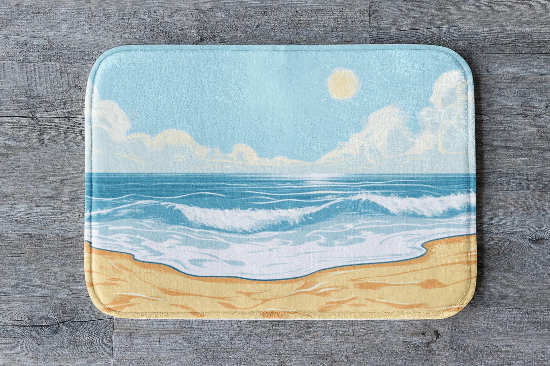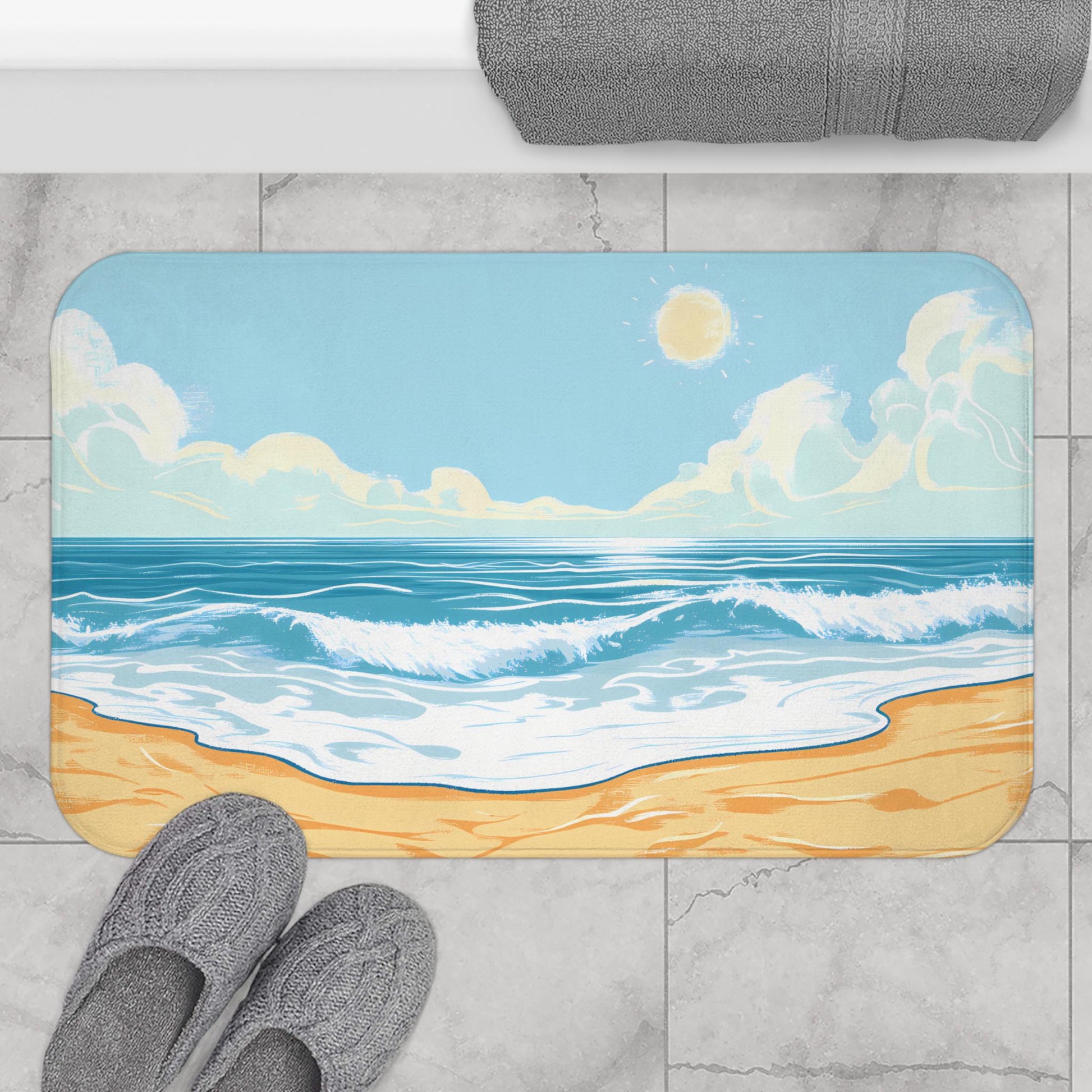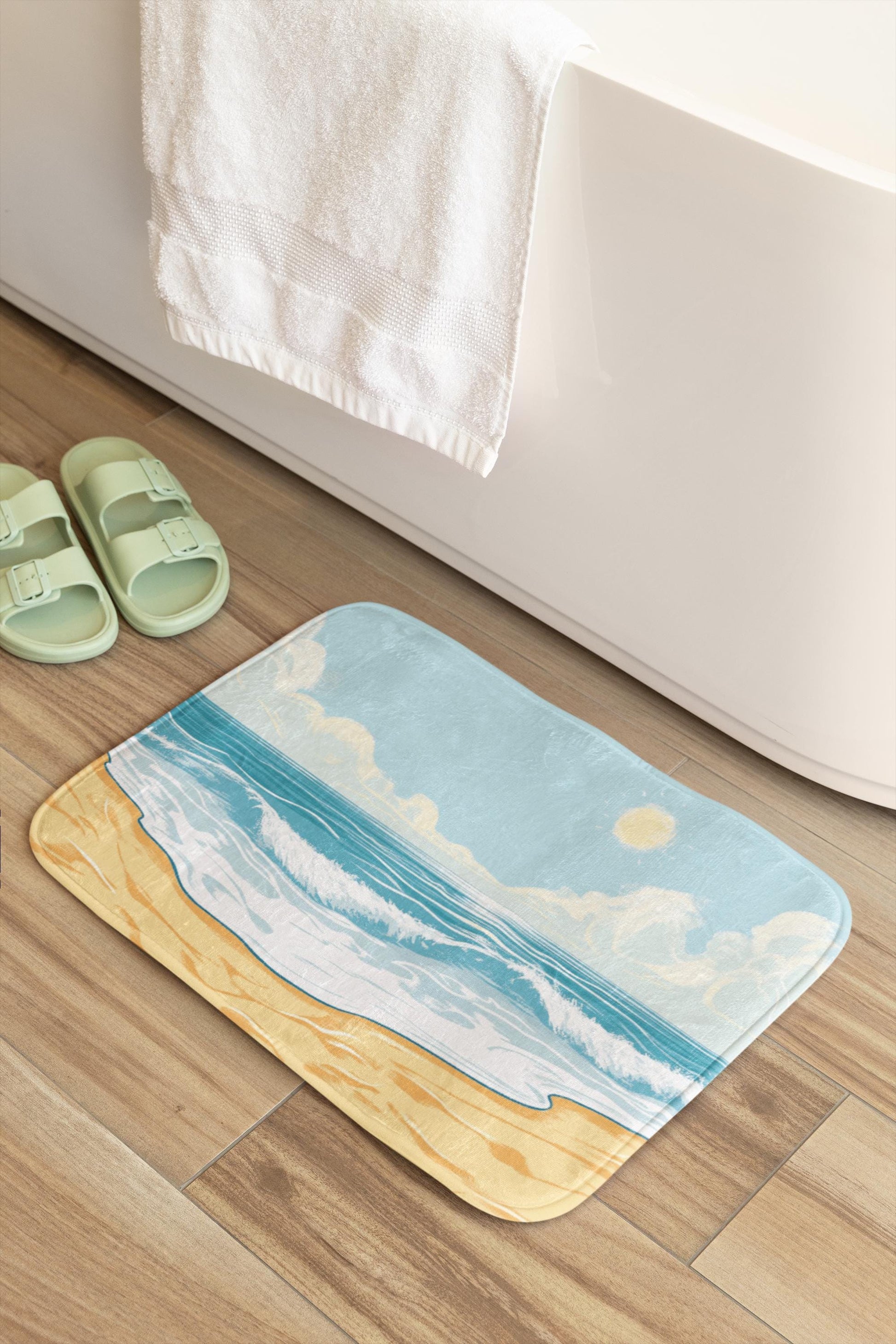 Bring the calm and beauty of the beach into your bathroom with this soothing bath mat featuring rolling ocean waves and soft sandy tones. The gentle blues and warm neutrals create a coastal escape, perfect for beach lovers, summer vibes, or nautical-themed bathrooms.