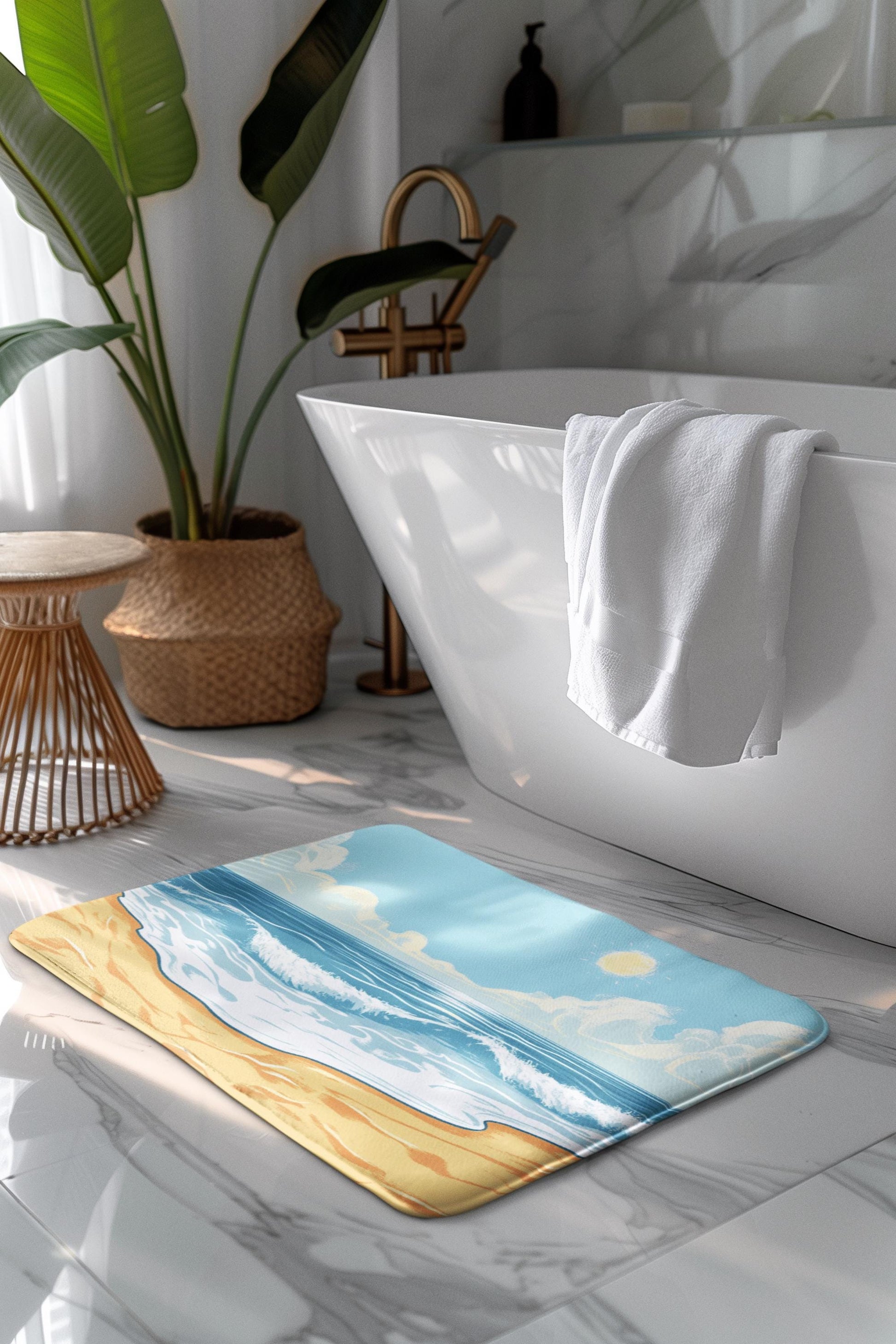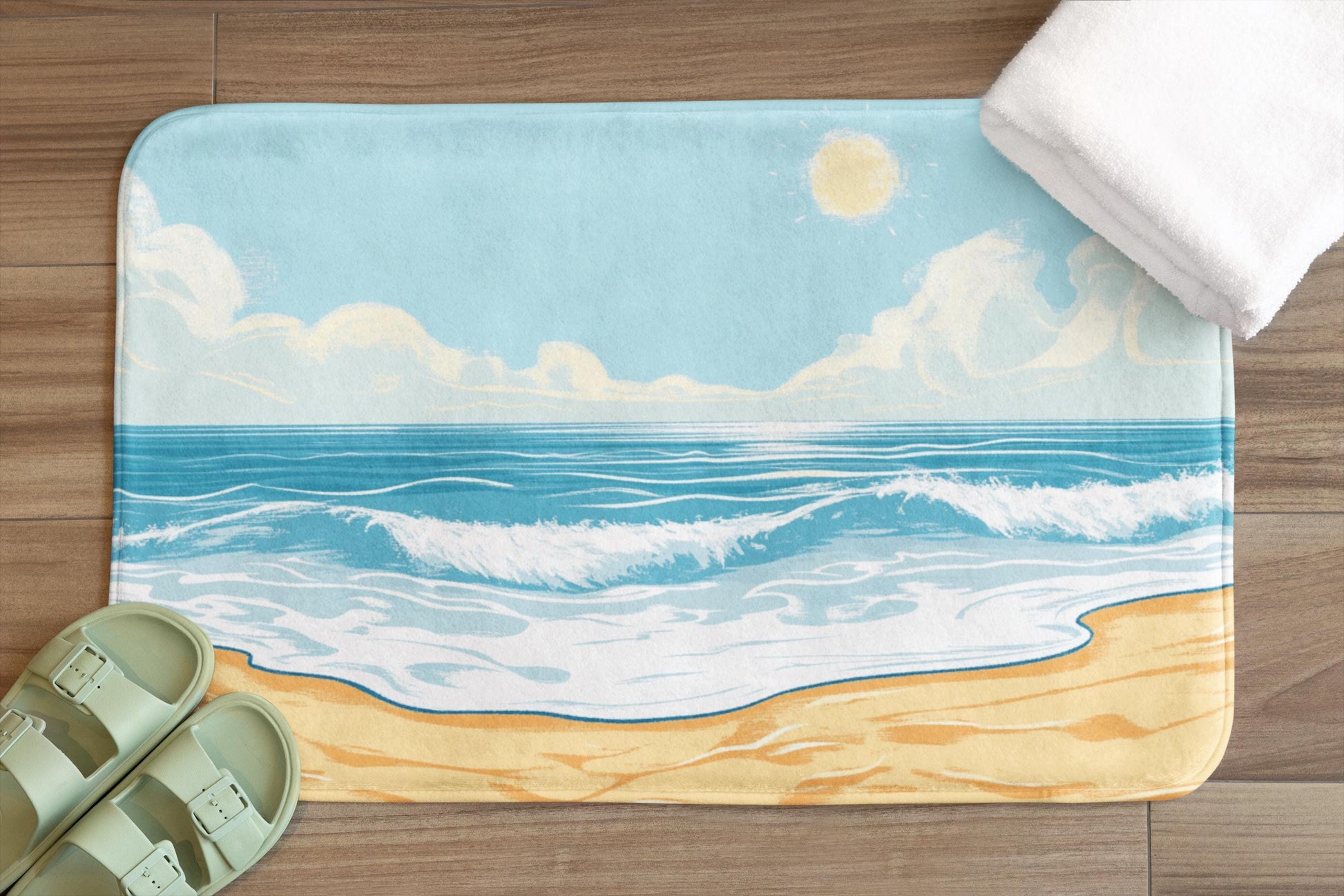 Beach Bath Mat – Coastal Ocean Wave Bathroom Rug