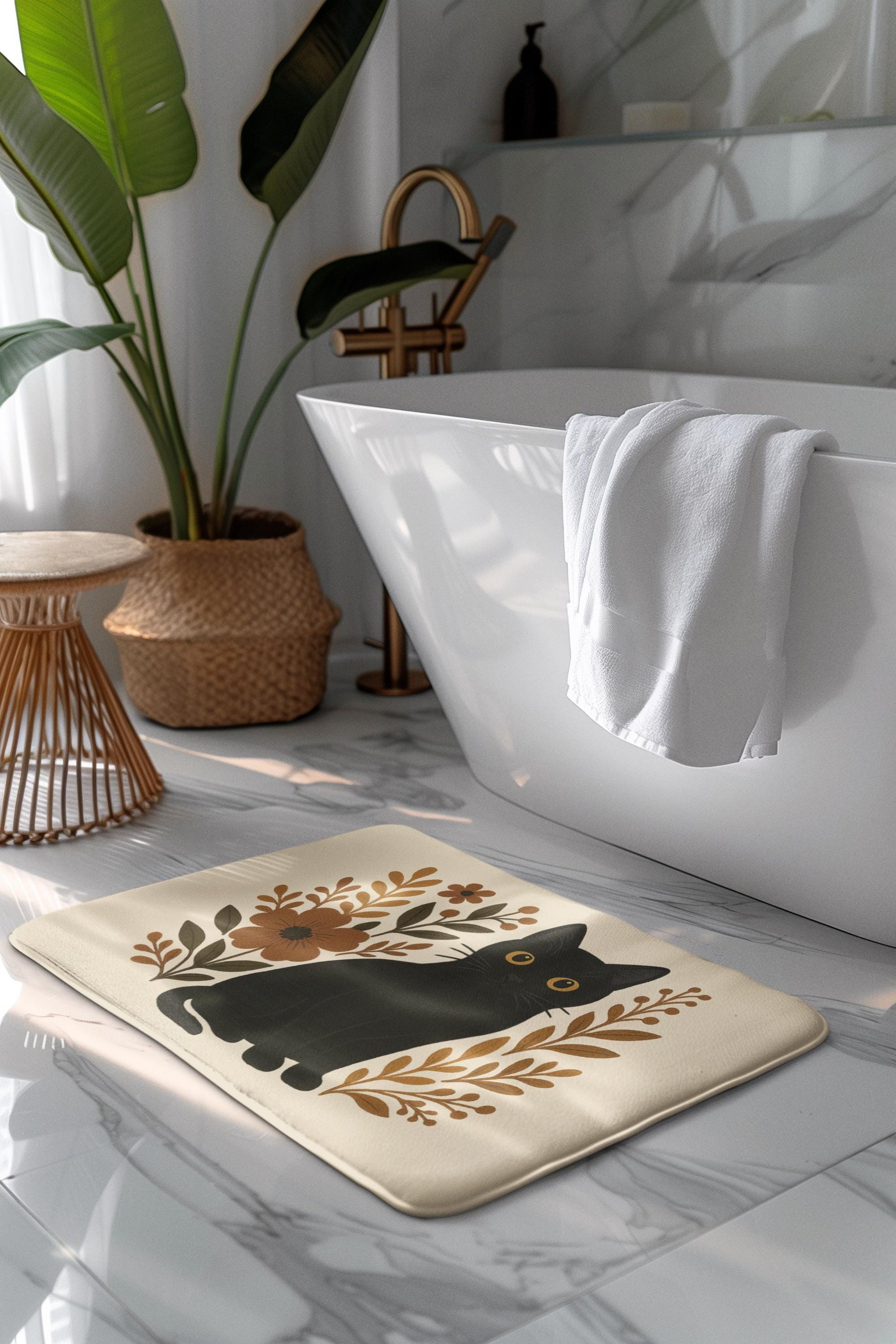 Black Cat Bath Mat – Cute Halloween Bathroom Rug for Cat Lovers