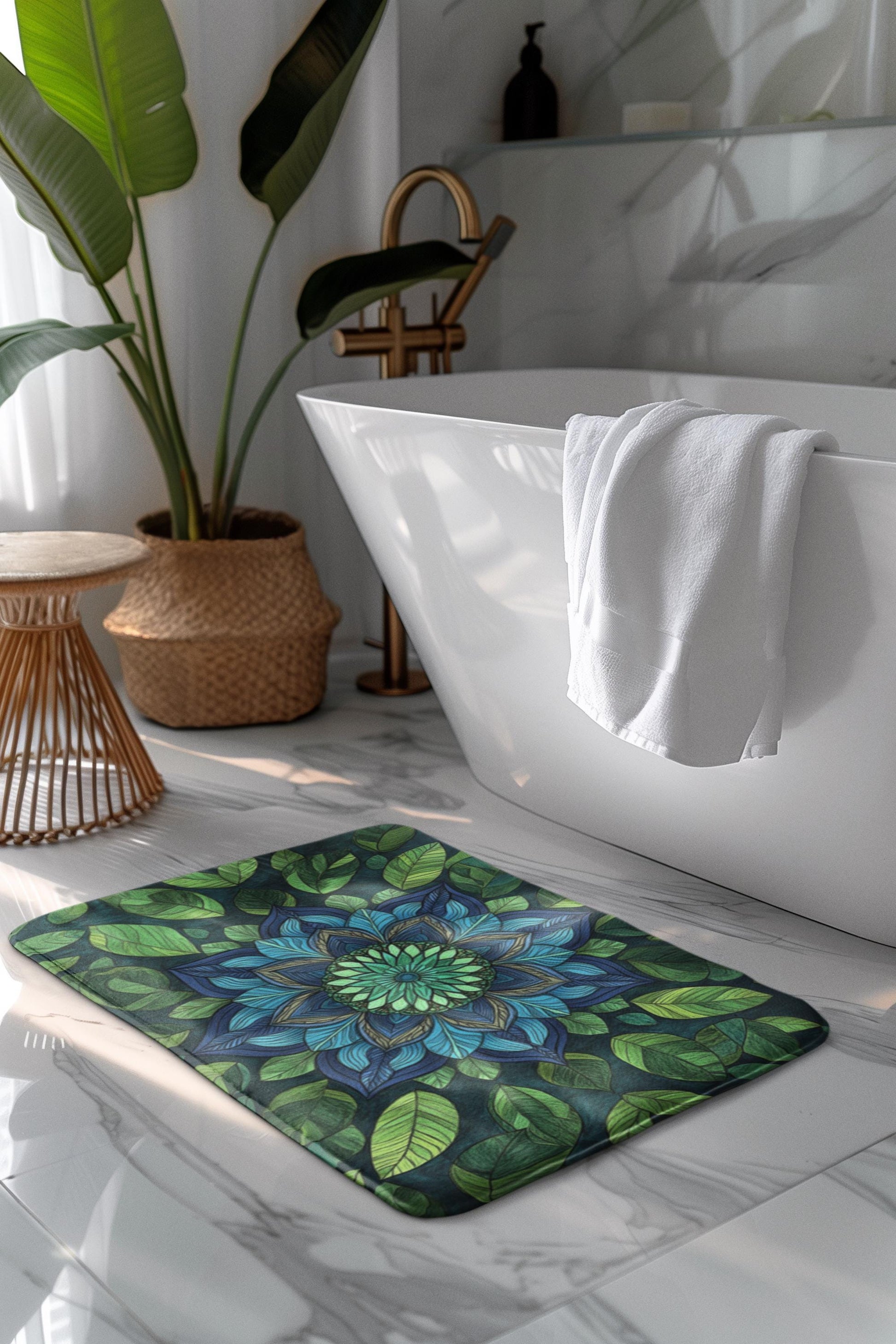 Create a calming sanctuary with this blue and green mandala bath mat. Featuring an intricate sacred geometry pattern, it’s a beautiful choice for boho or meditation-inspired decor. Plush comfort and slip-resistant backing make it as practical as it is stylish.
