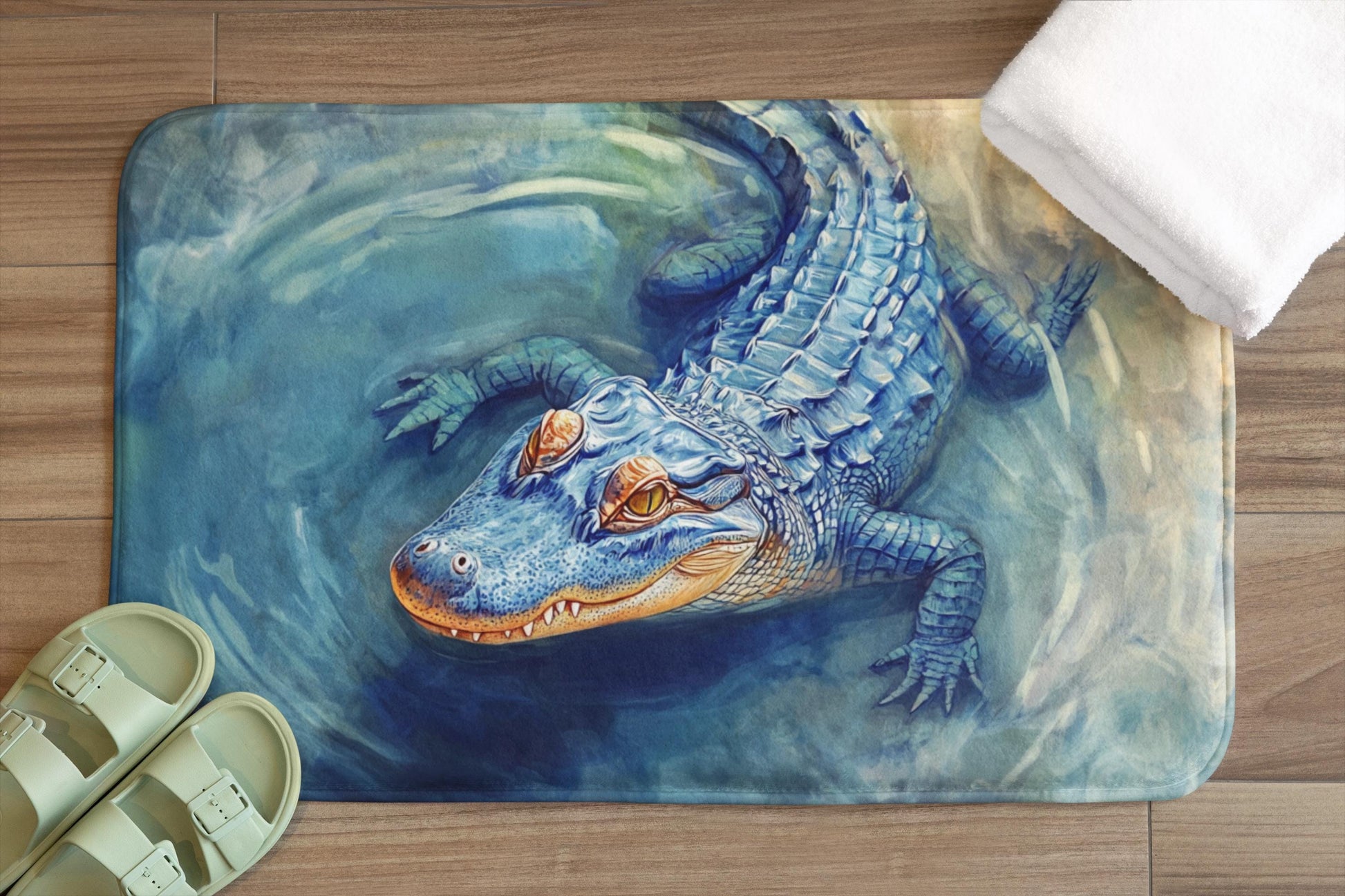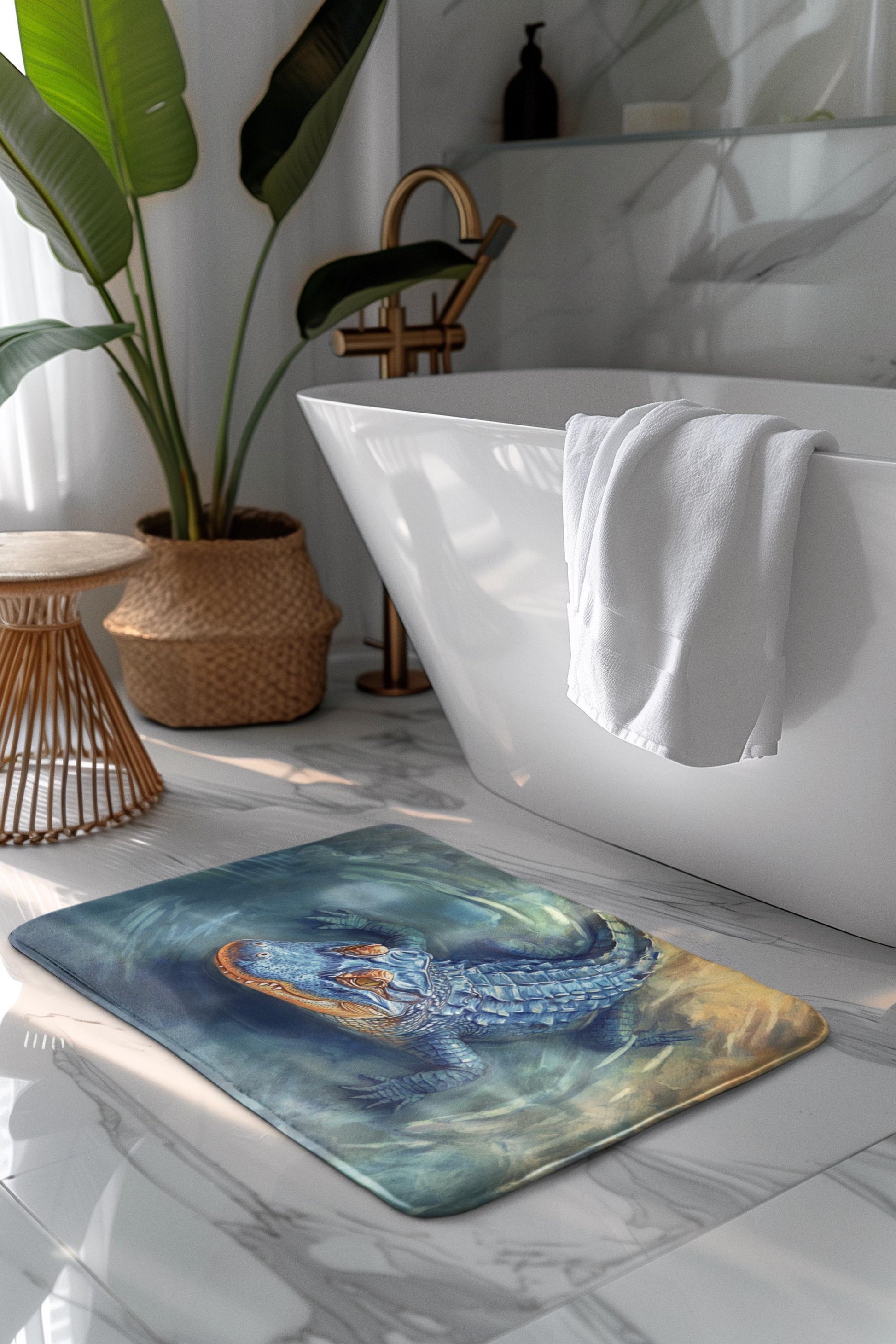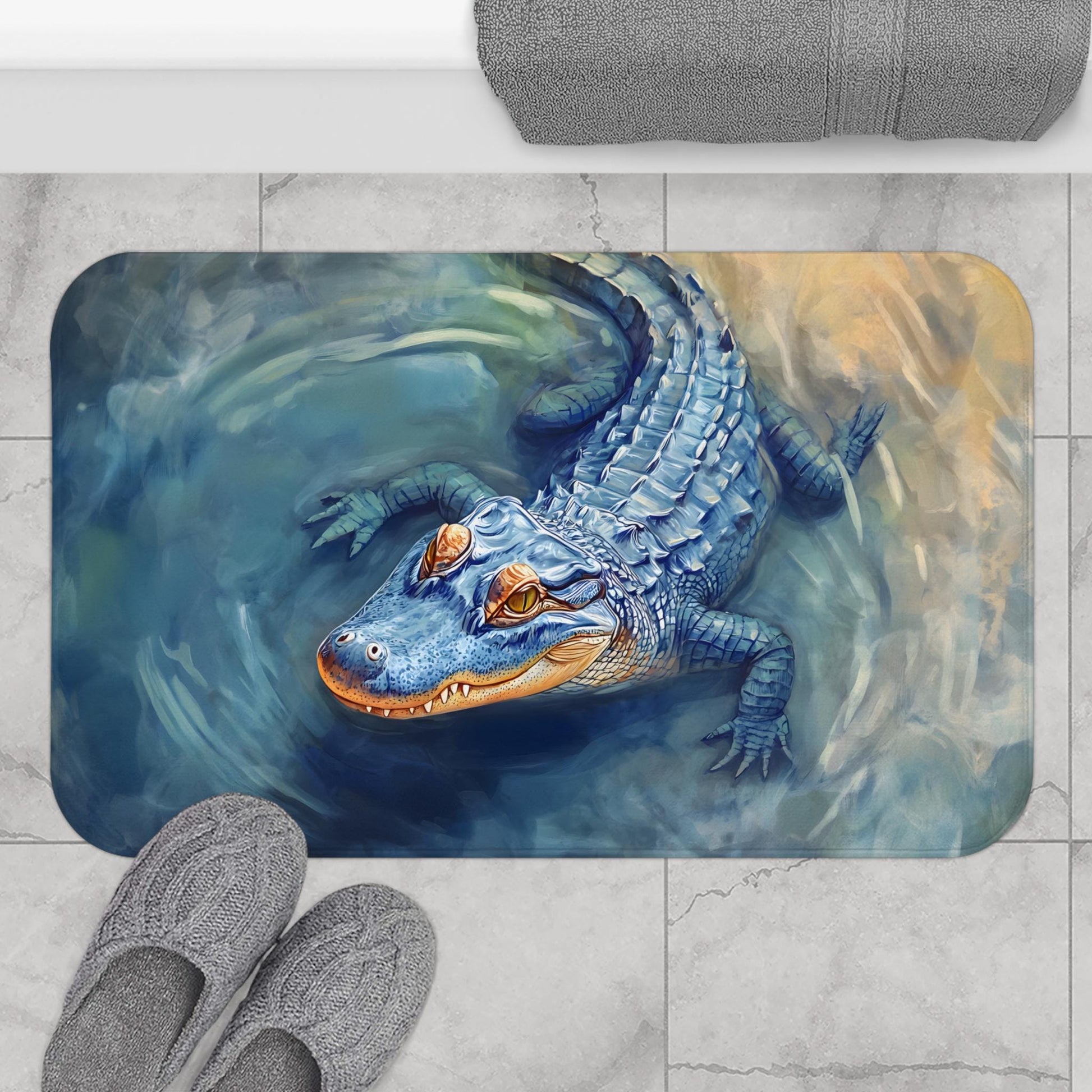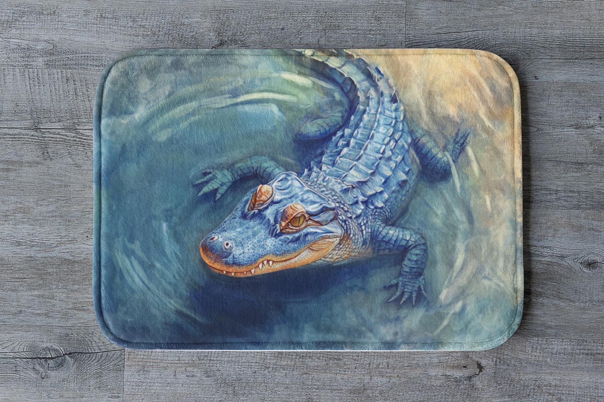 Crocodile Bath Mat – Blue Alligator Bathroom Rug