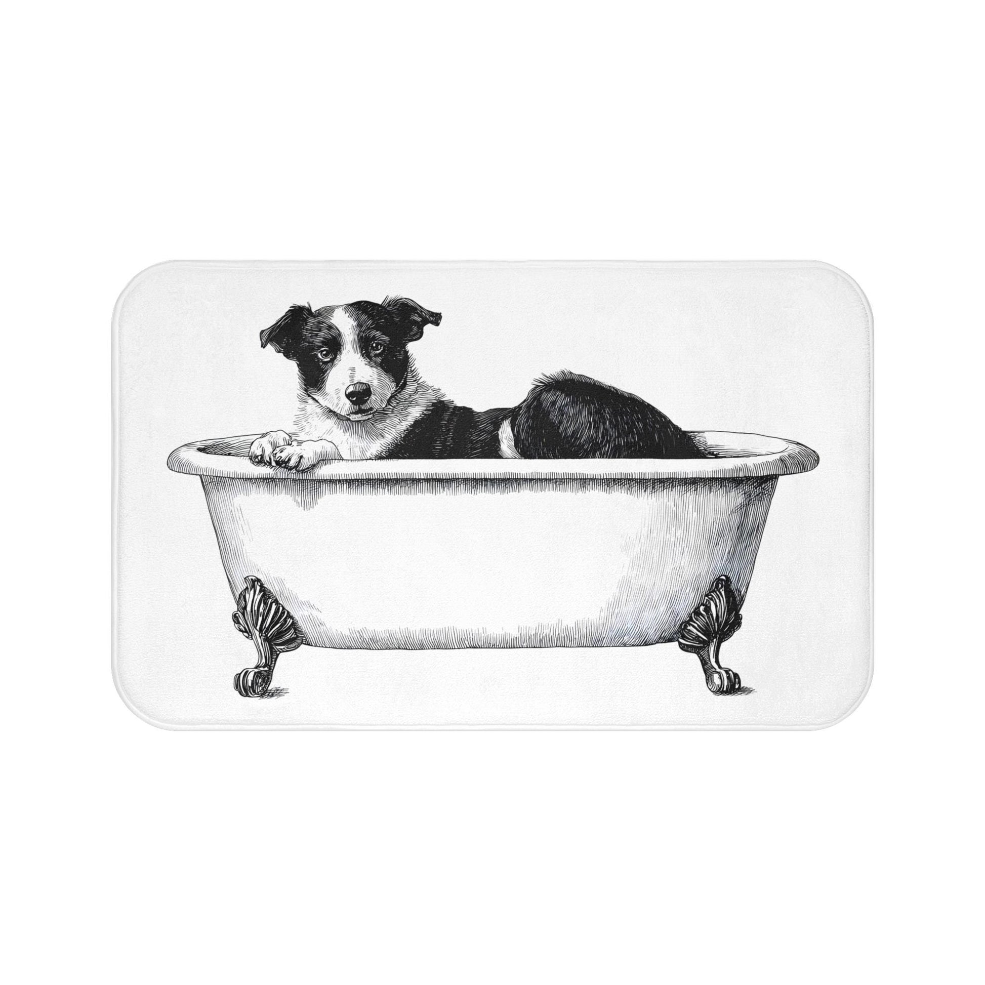 Dog Bath Mat – Black and White Pup Bathroom Rug
