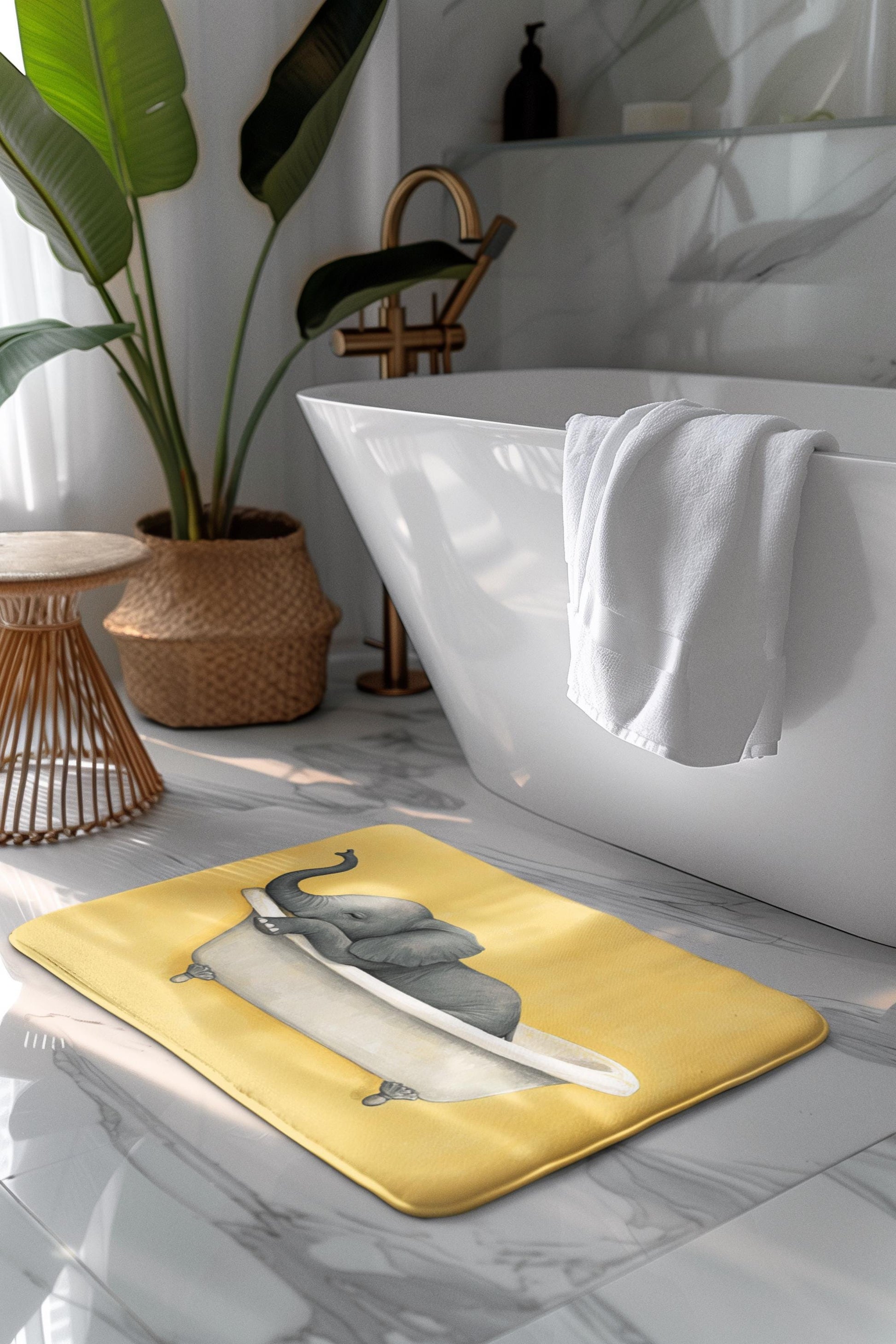 Bring a joyful safari vibe to your space with this cute elephant bath mat. The playful illustration adds personality and charm to any bathroom—perfect for animal lovers, kids’ spaces, or a fun gift. Soft, absorbent, and slip-resistant.