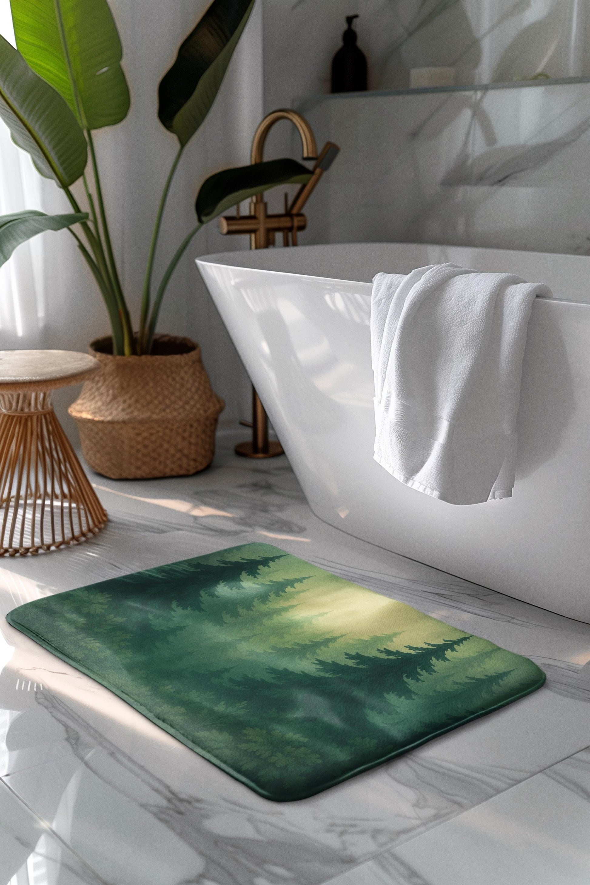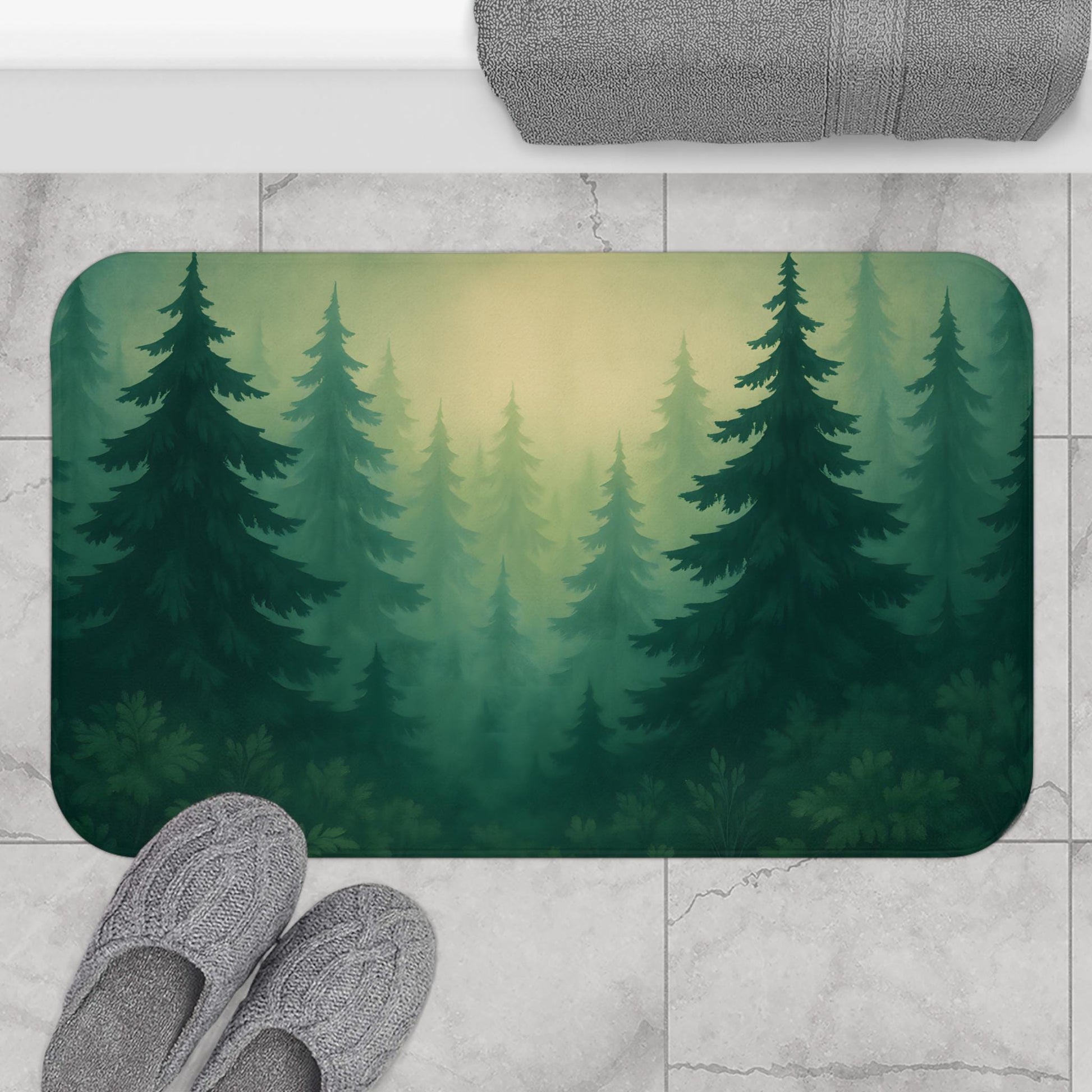Bring the beauty of the outdoors inside with this pine tree forest bath mat. Its serene woodland design creates a calming atmosphere while offering everyday comfort and safety. A perfect accent for rustic, cabin, or nature-inspired bathrooms.