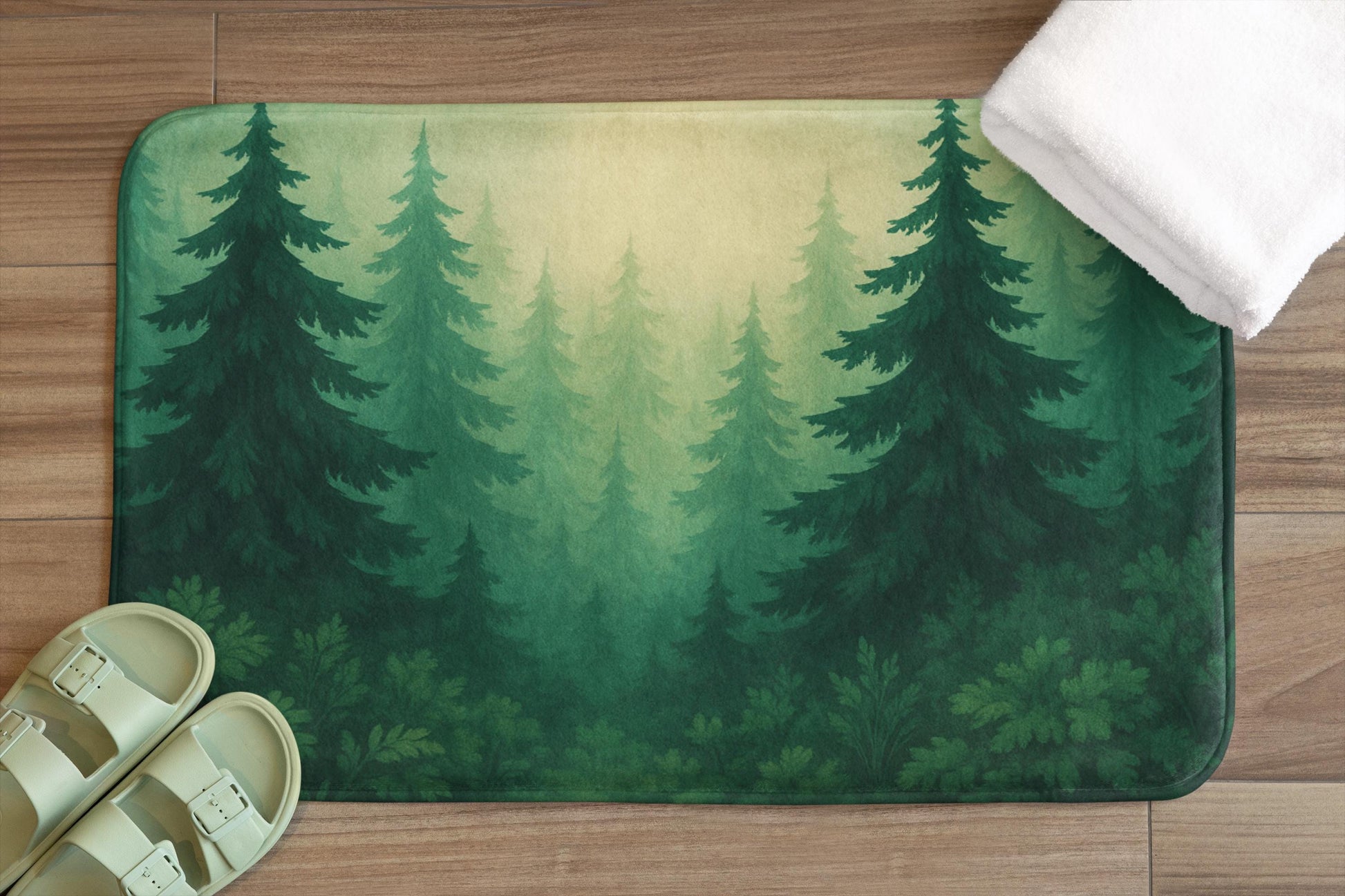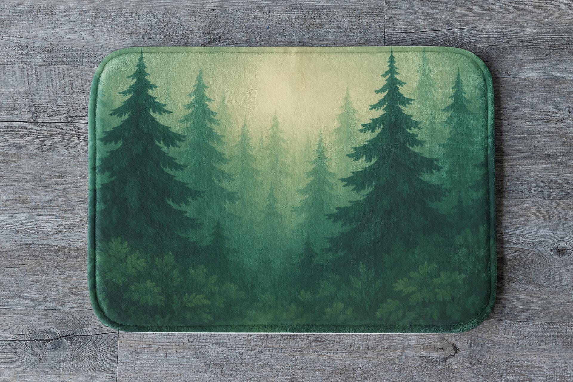 Forest Bath Mat – Pine Trees Nature Bathroom Rug