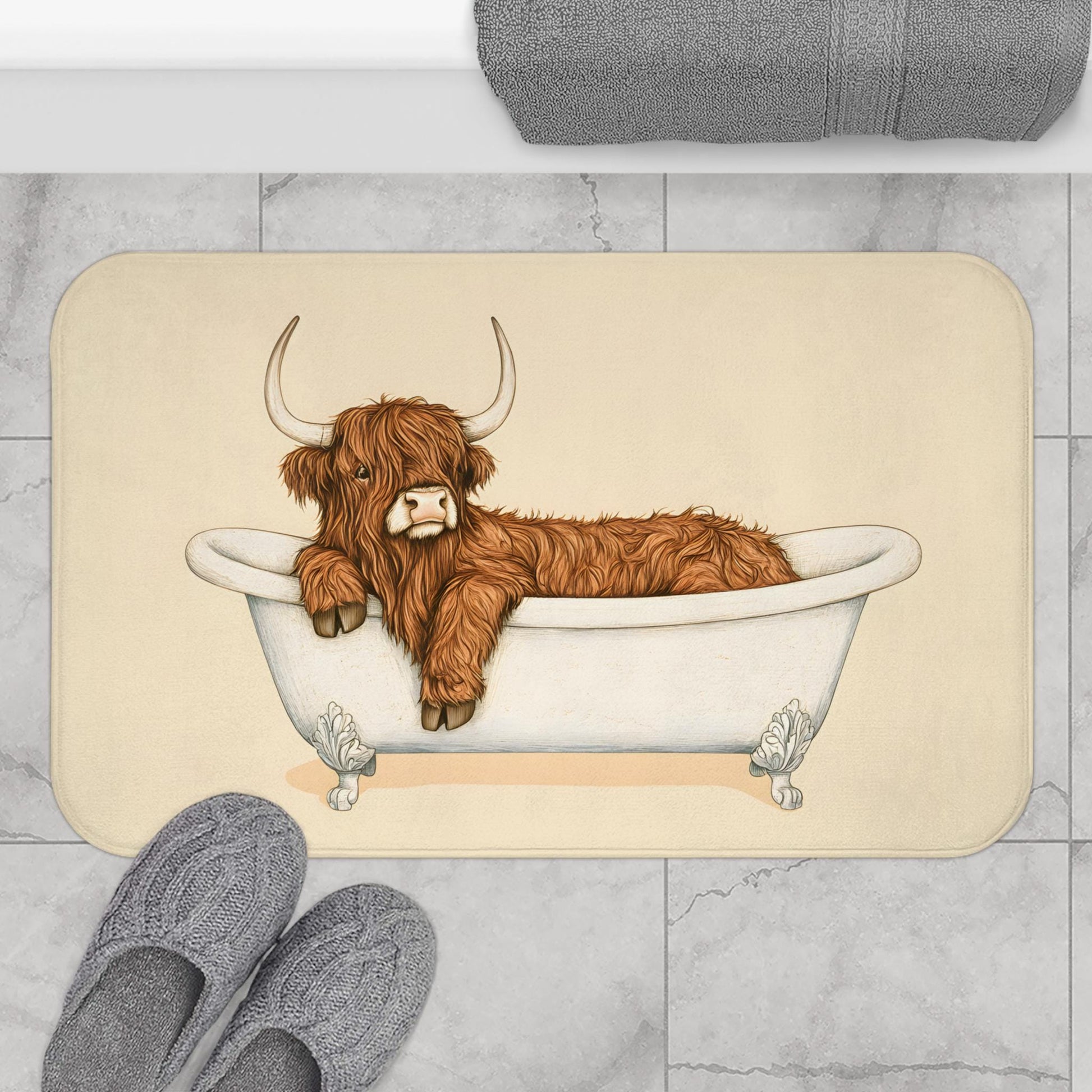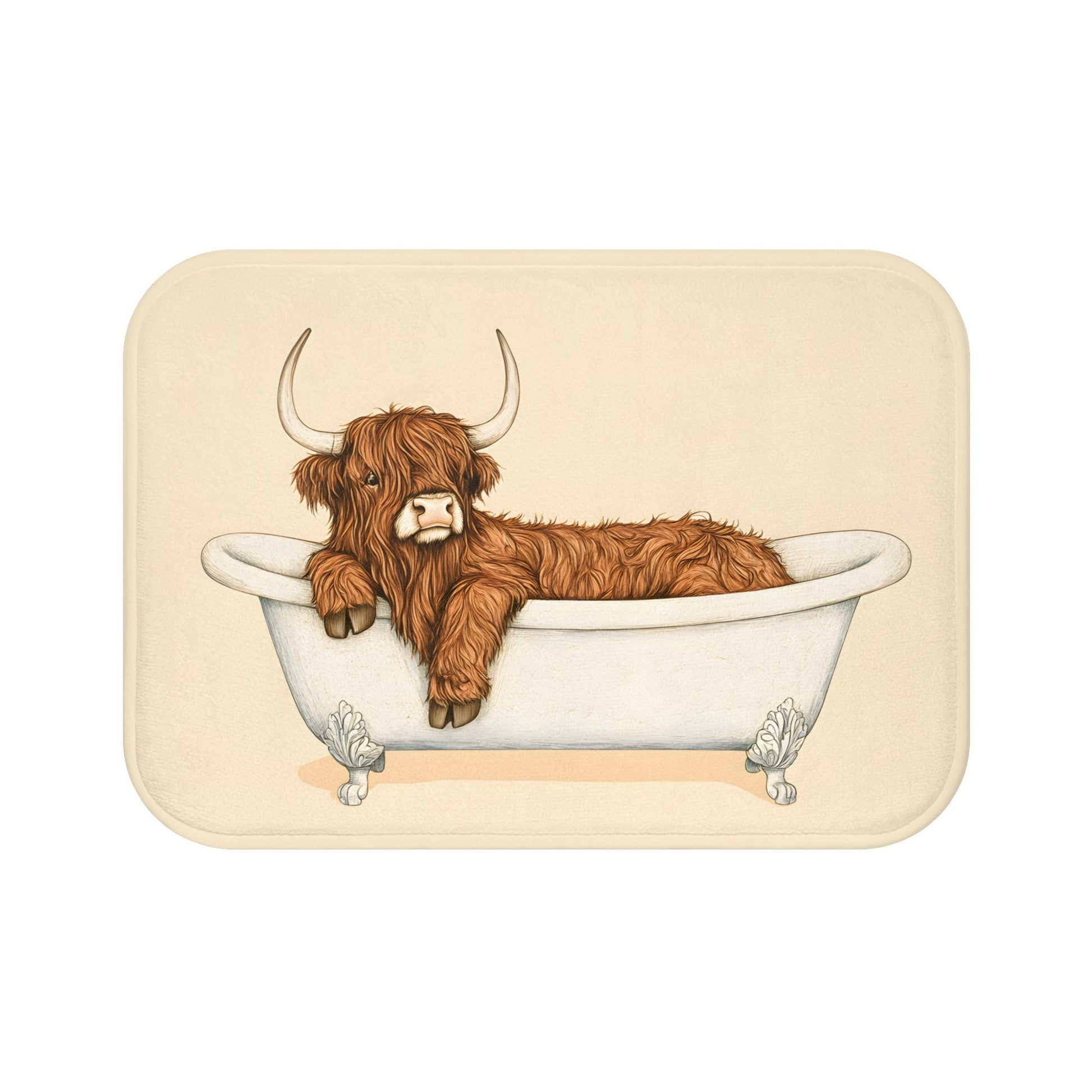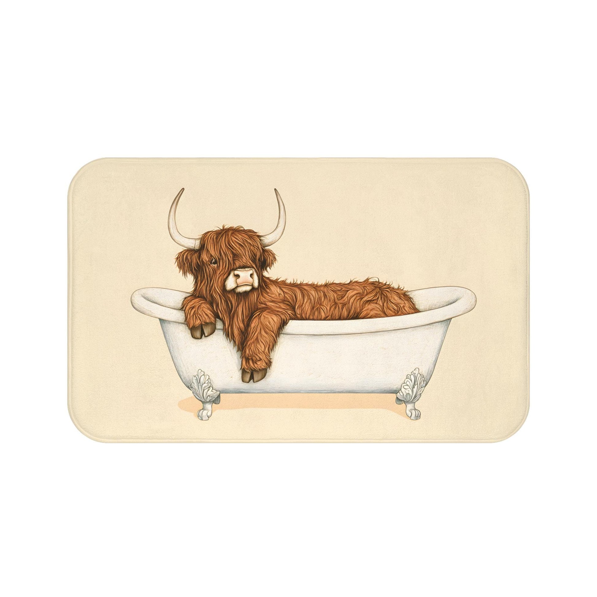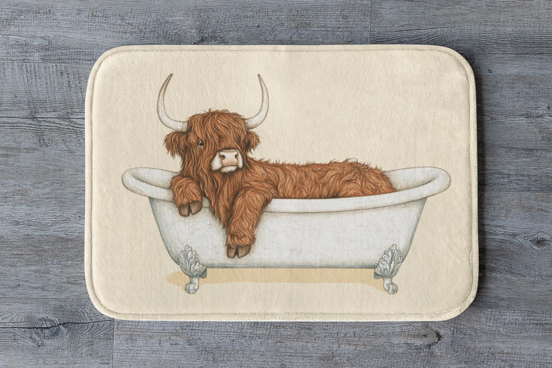 Bring a cozy countryside vibe into your bathroom with this Highland Cow bath mat. Featuring a rustic and charming design, it’s the perfect accent piece for farmhouse-style homes and animal lovers alike. Soft, absorbent, and durable, it adds both comfort and character to your daily routine.