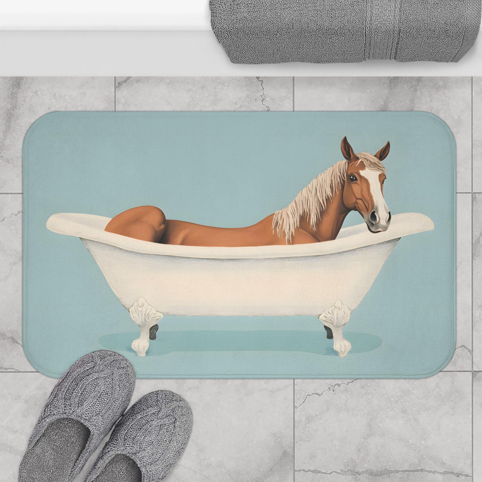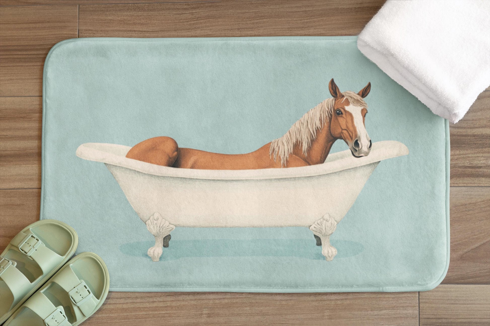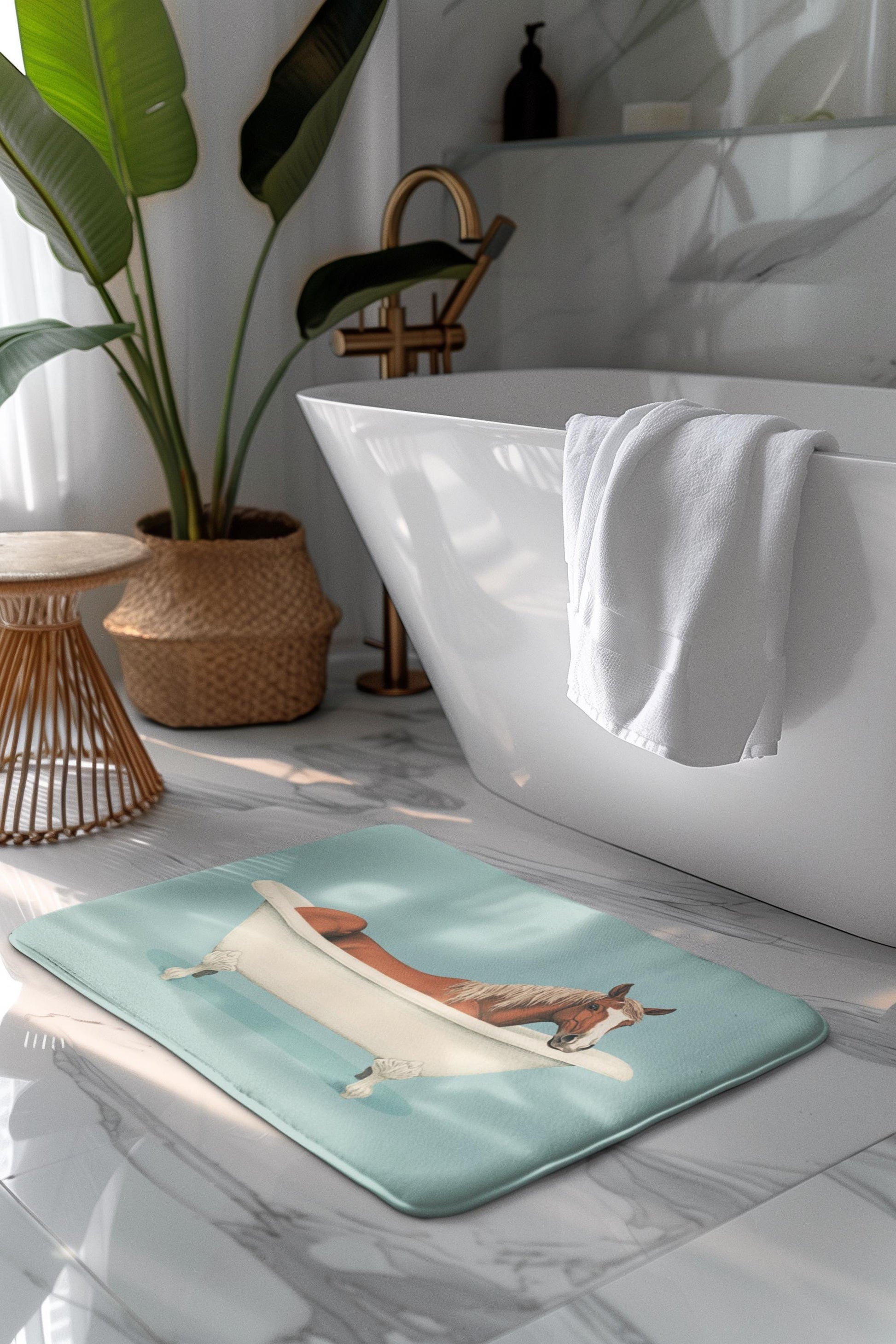 Horse Bath Mat – Elegant Animal Bathroom Rug, Country Farmhouse Decor