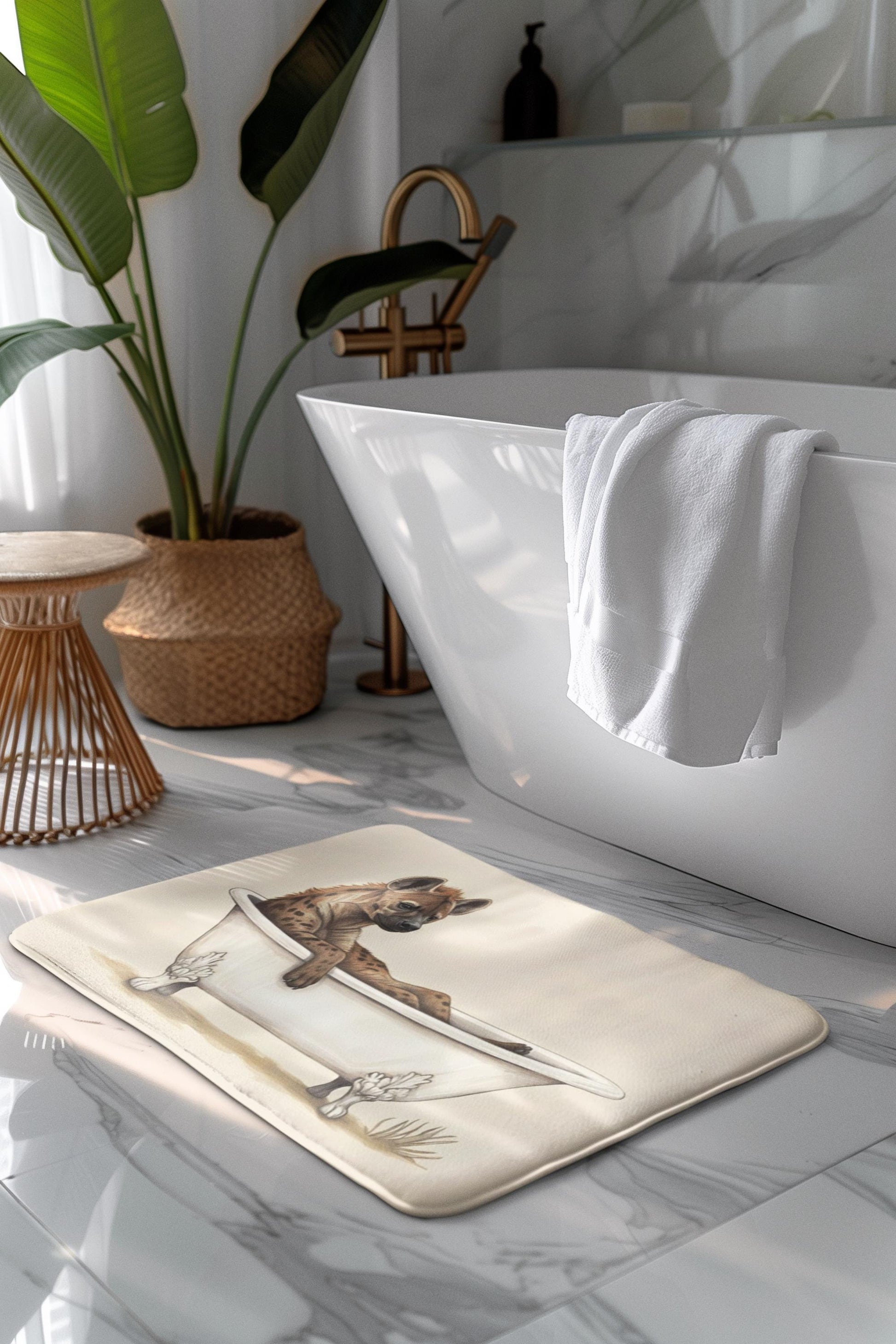 Bring a wild touch of humor with this chilled hyena lounging in a clawfoot tub. A playful pick for safari or jungle-themed bathrooms. Soft, absorbent, and non-slip.