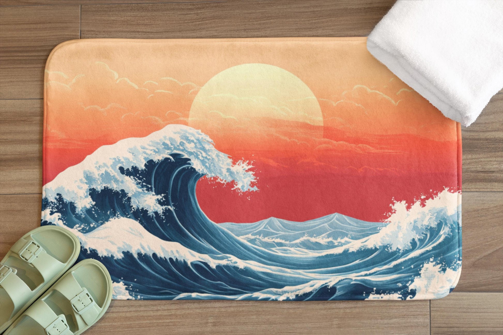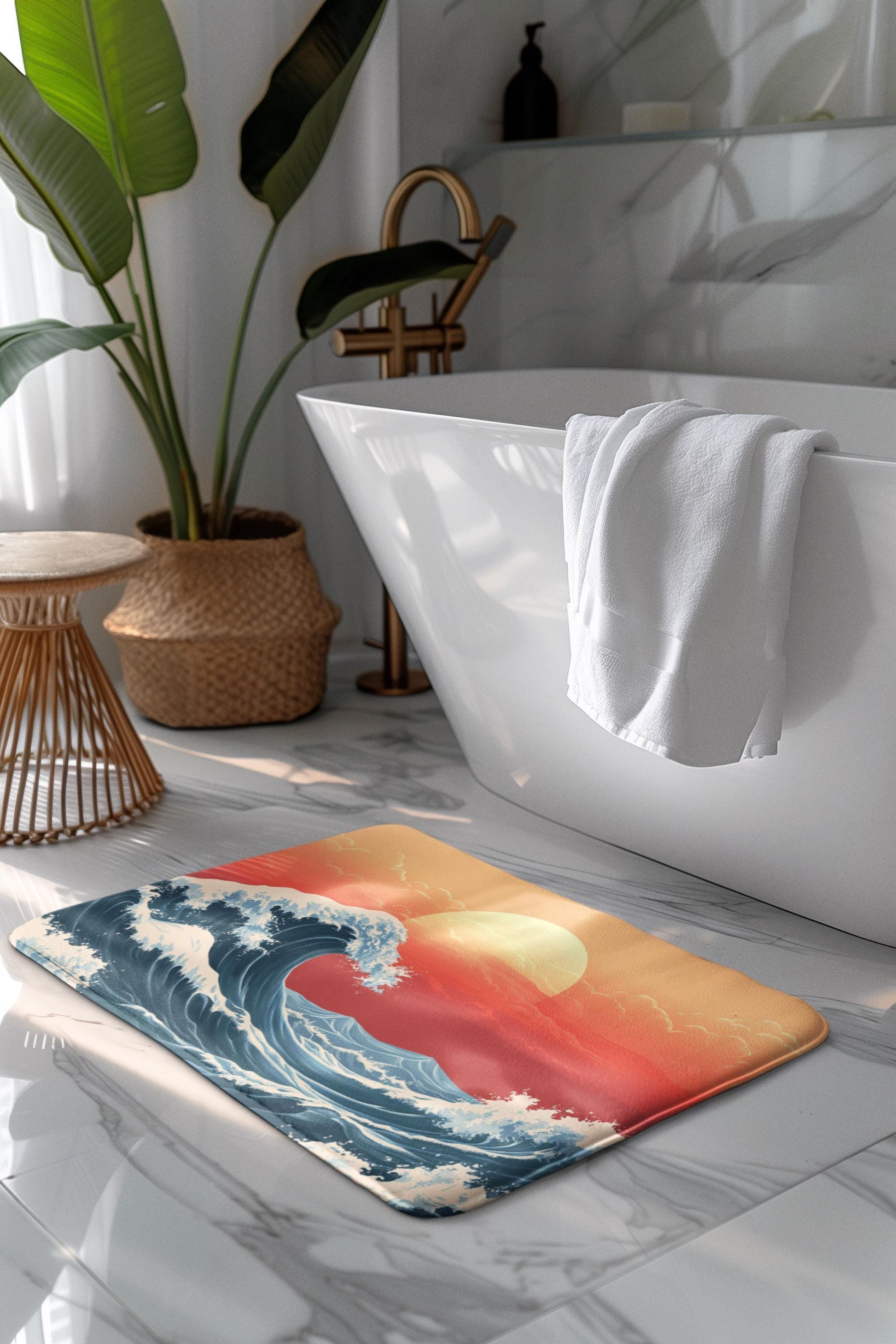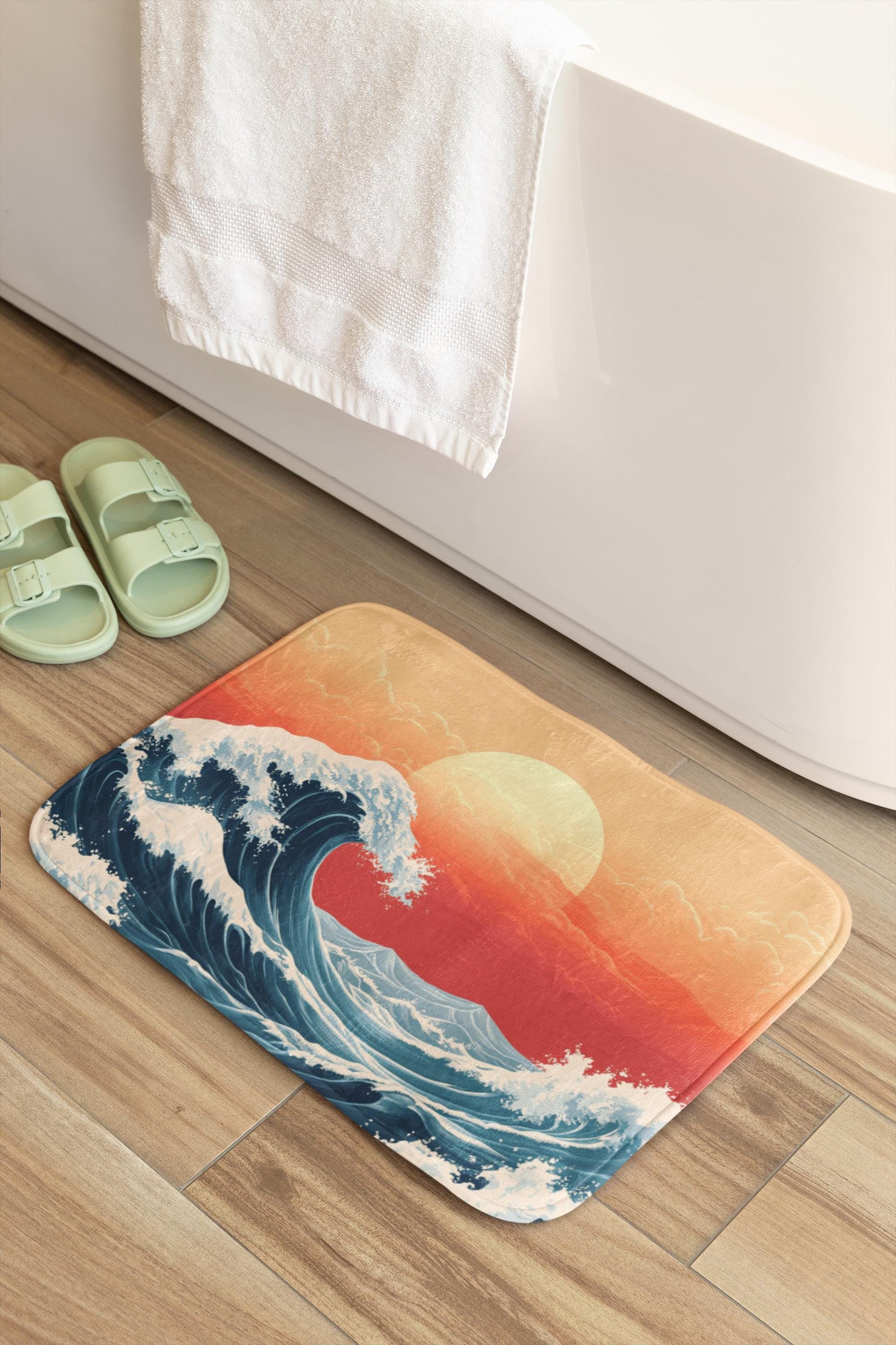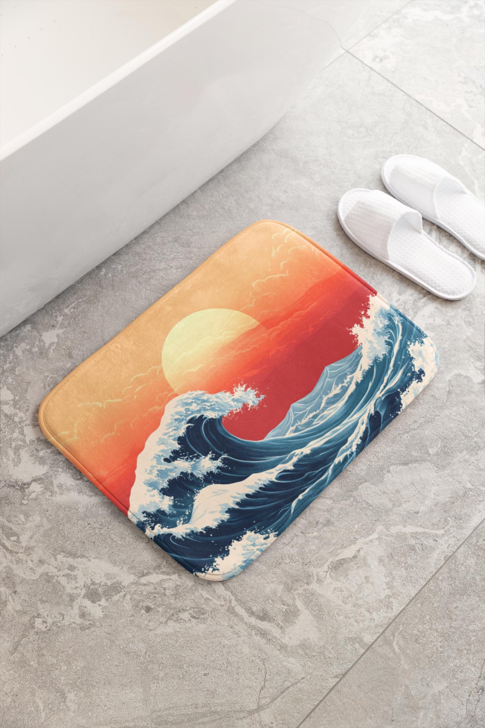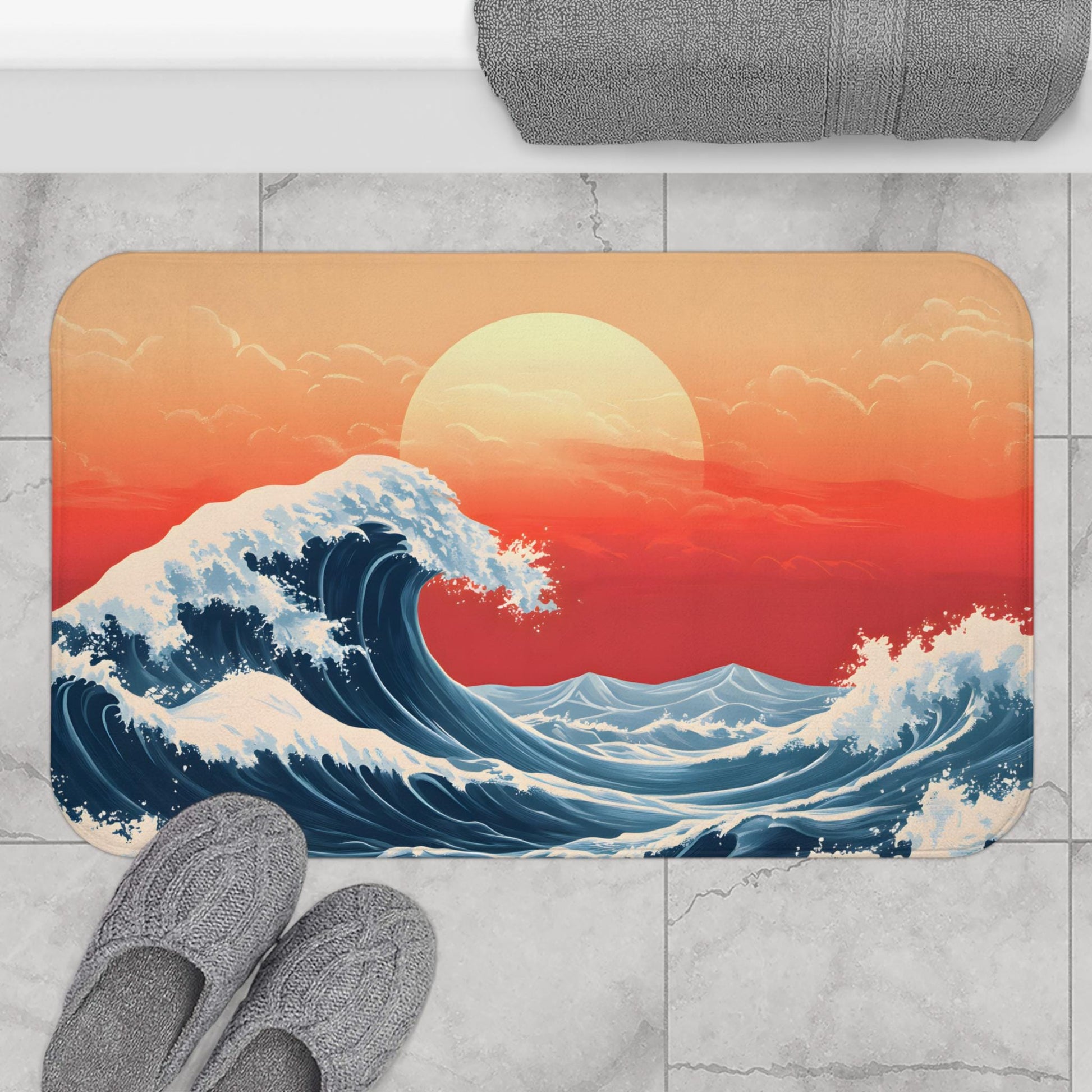 Japanese Wave Bath Mat – Ocean Inspired Bathroom Rug
