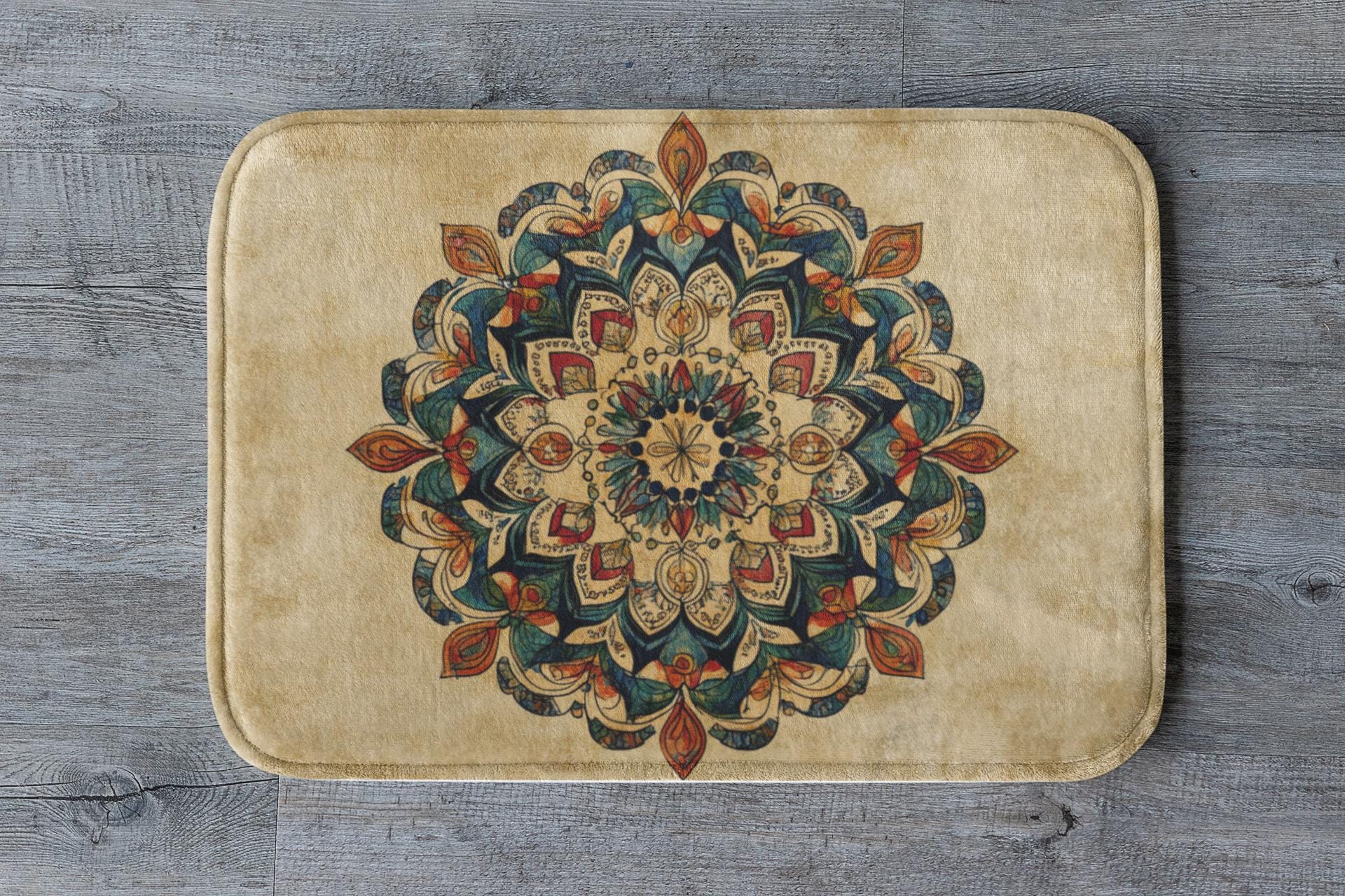 Mandala Bath Mat – Colorful Boho Spiritual Rug, Artistic Bathroom Accent