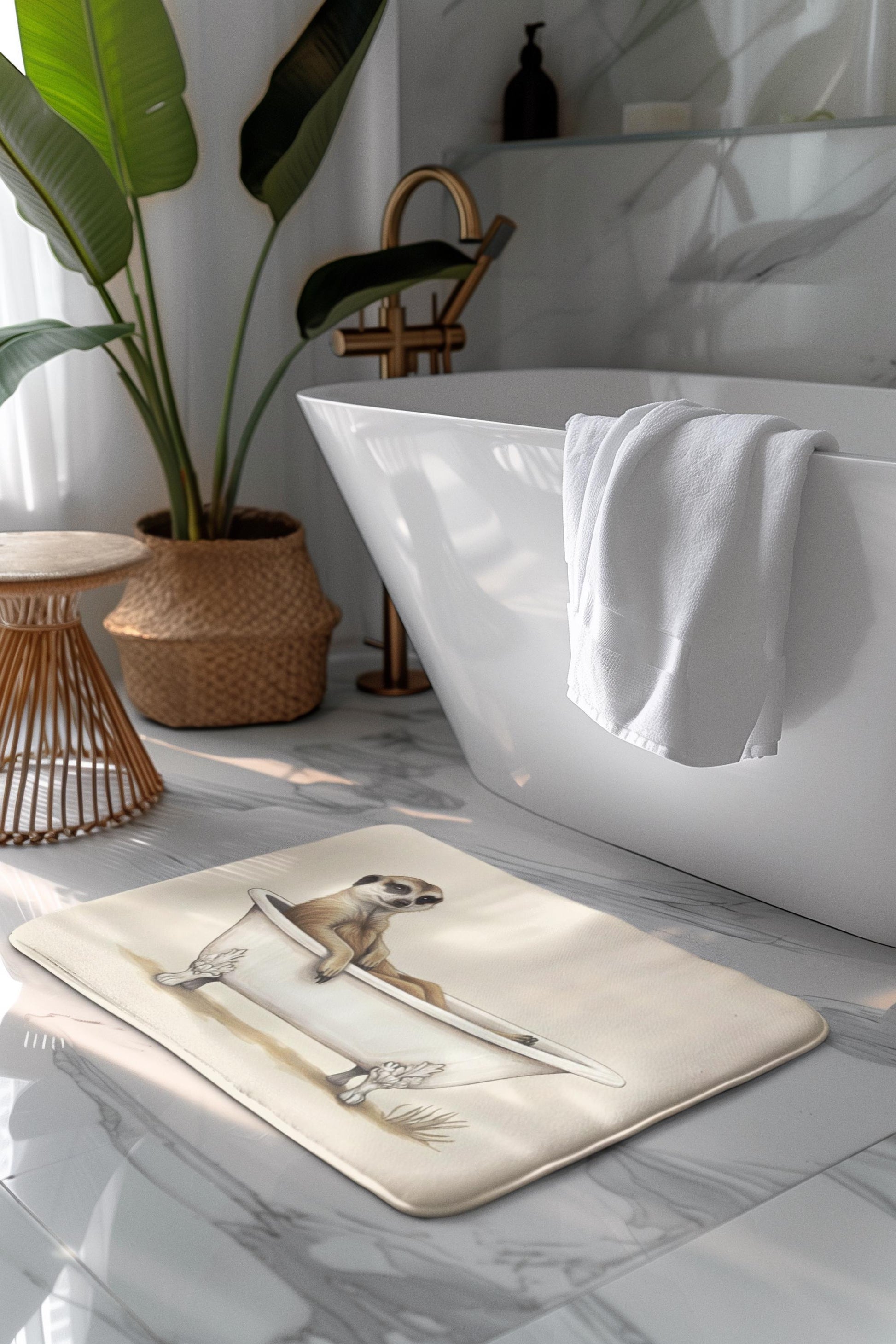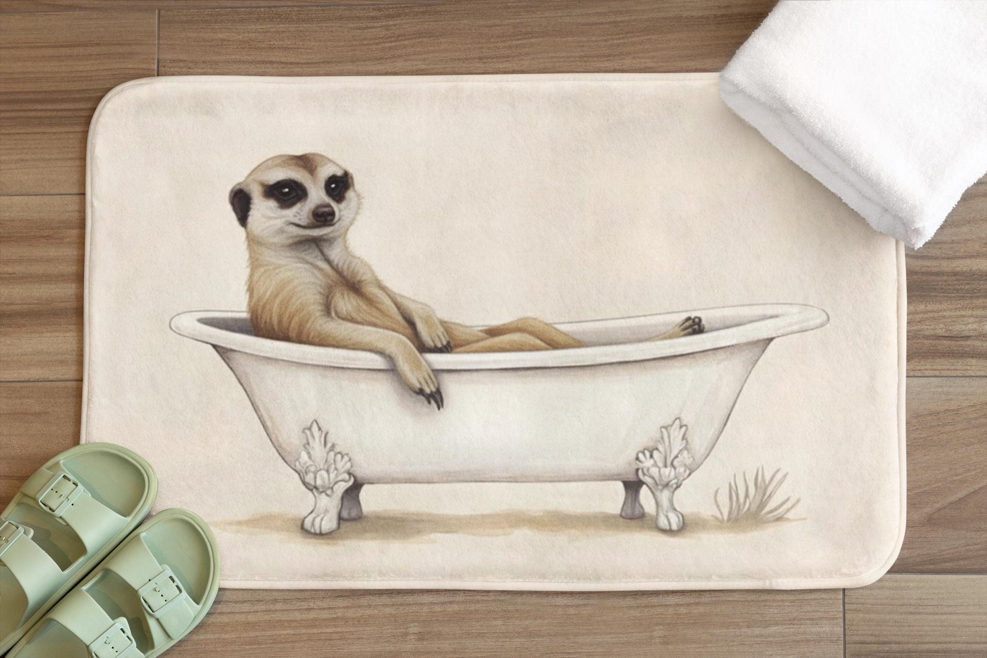 Add a dash of personality and safari charm to your bathroom with this adorable meerkat bath mat. Featuring a relaxed meerkat lounging in a vintage clawfoot tub, it brings warmth and humor to your daily routine. Soft, absorbent, and slip-resistant.