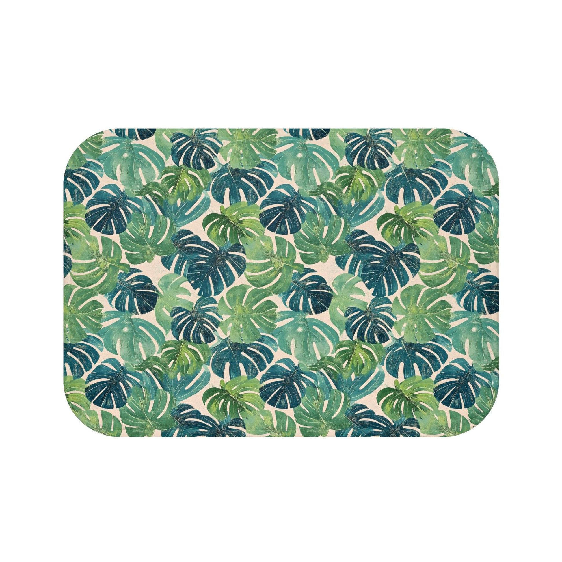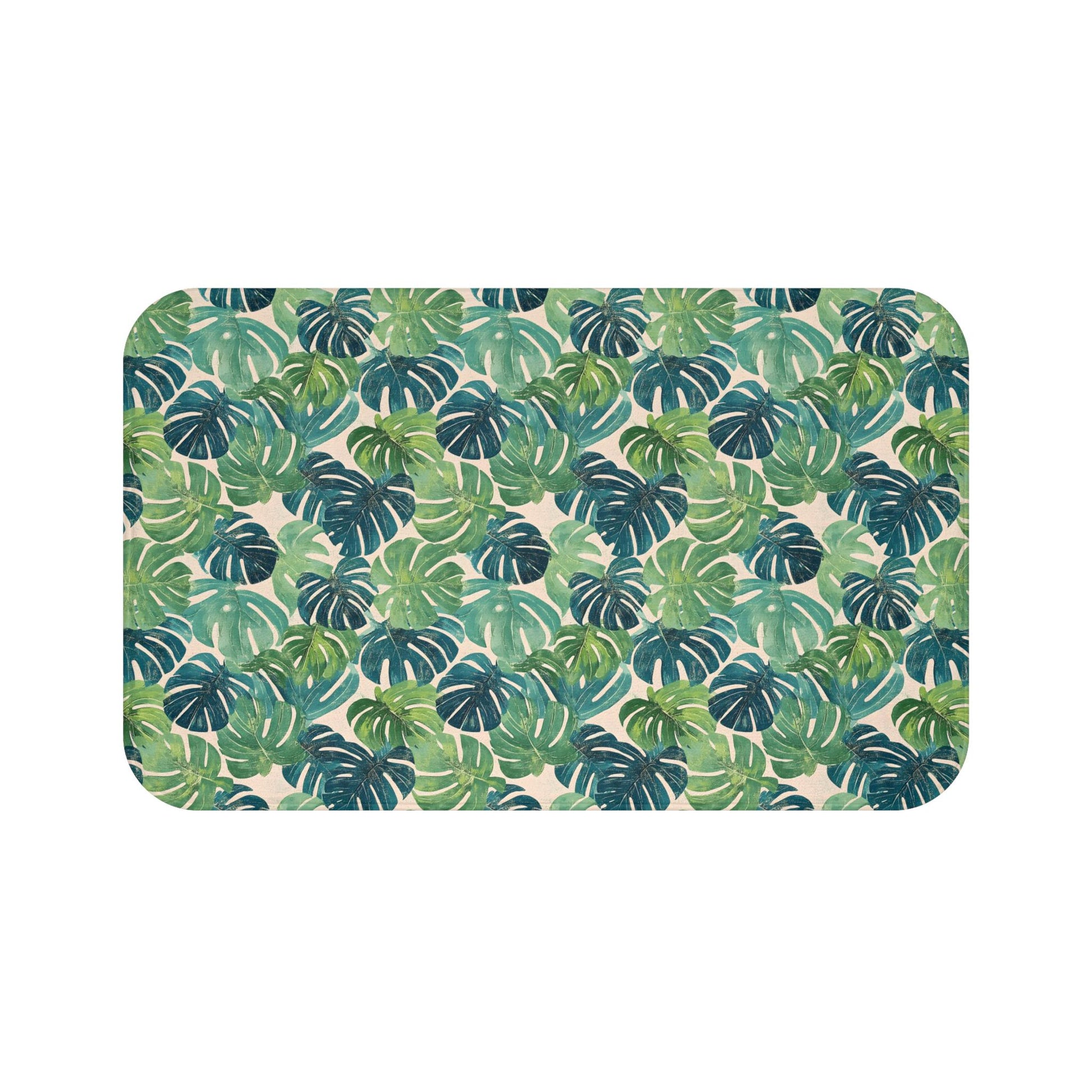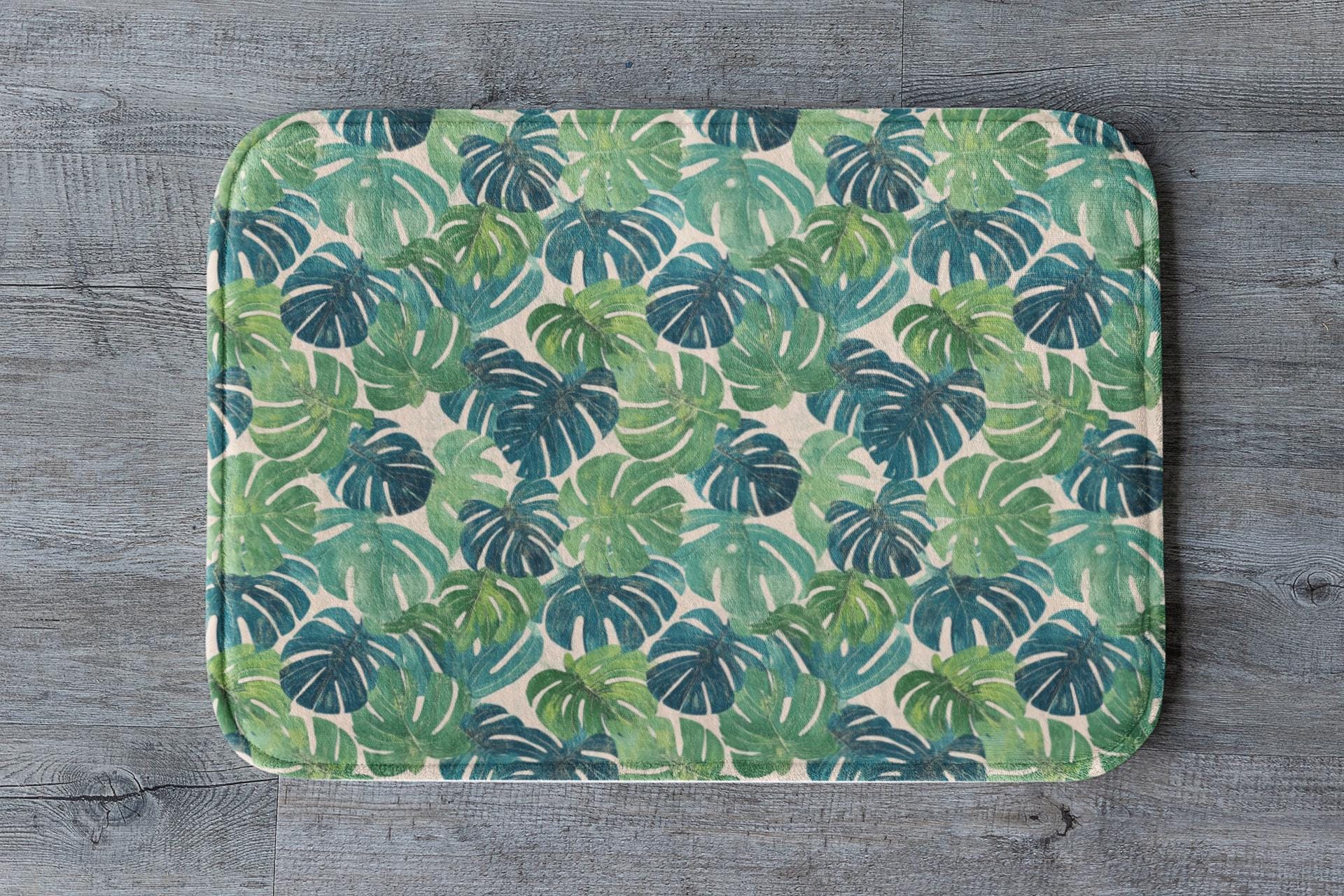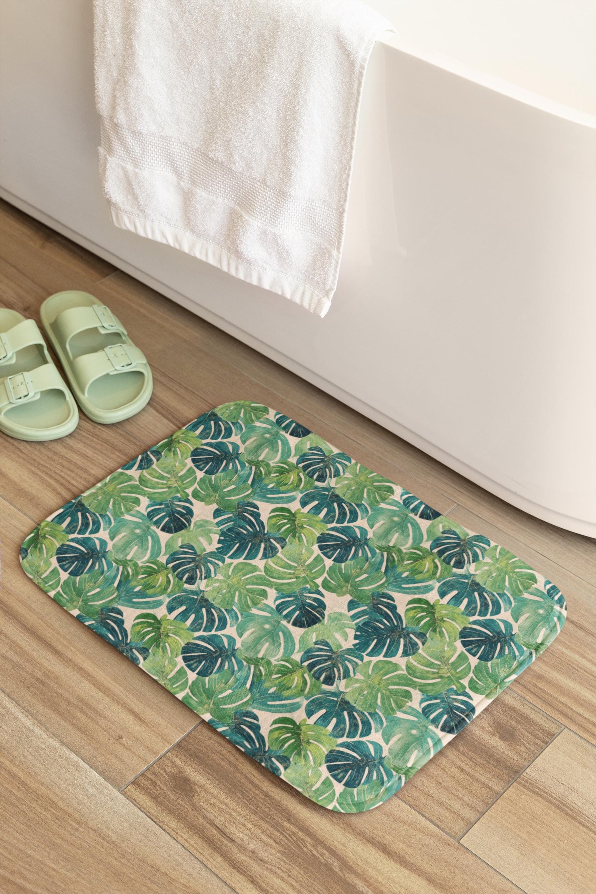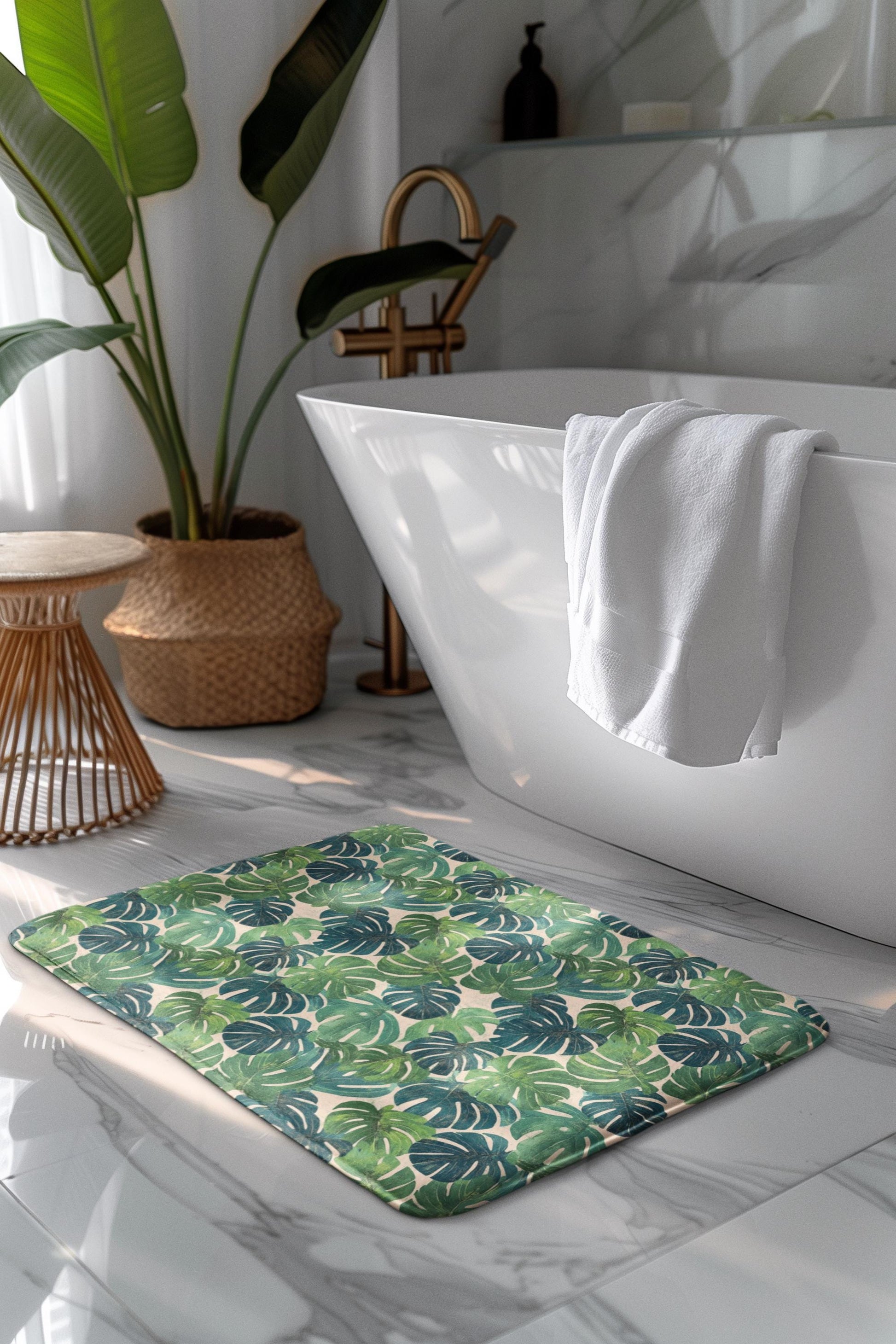 Monstera Leaf Bath Mat – Tropical Green Bathroom Rug