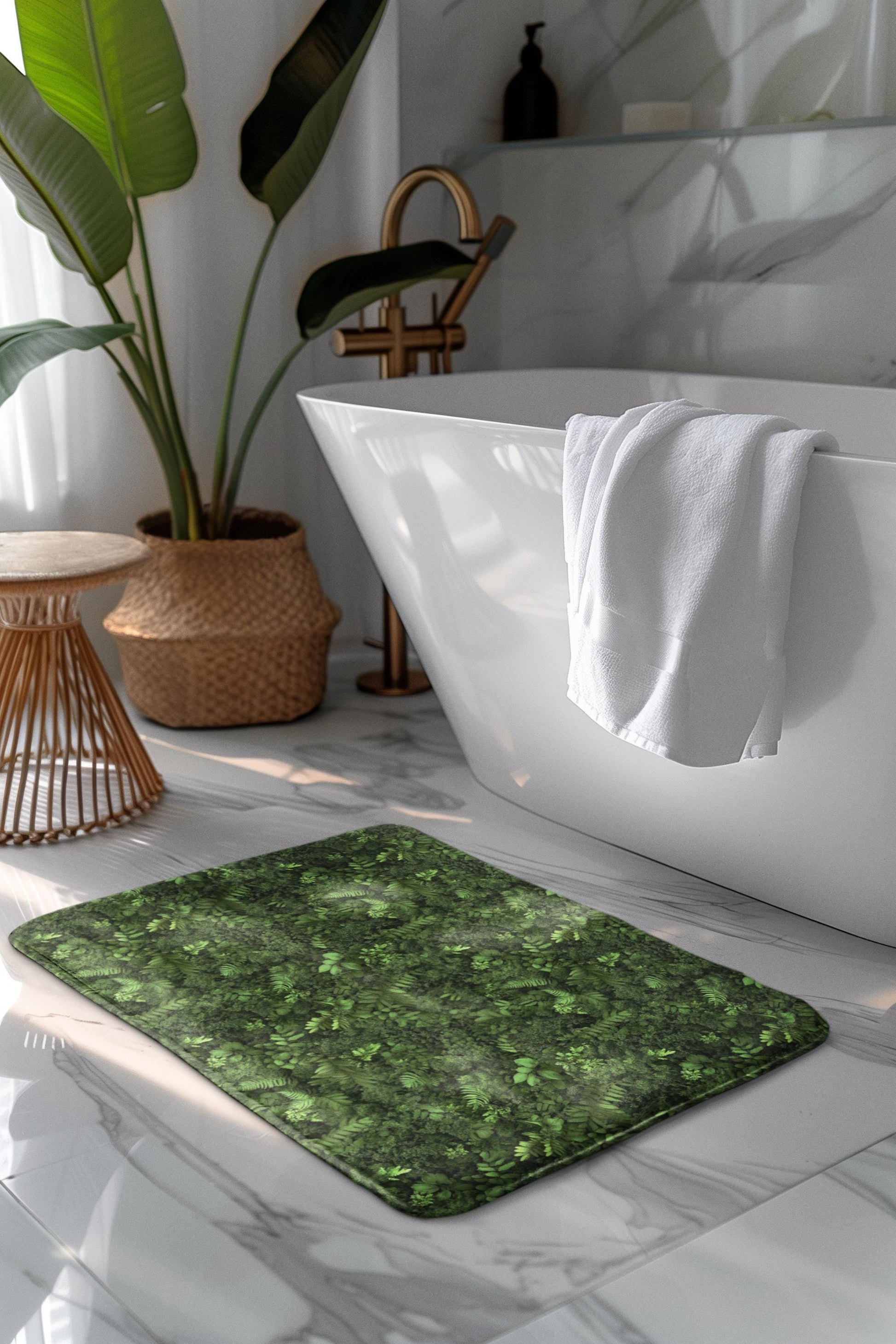 Moss Bath Mat – Green Botanical Bathroom Rug with Nature Design