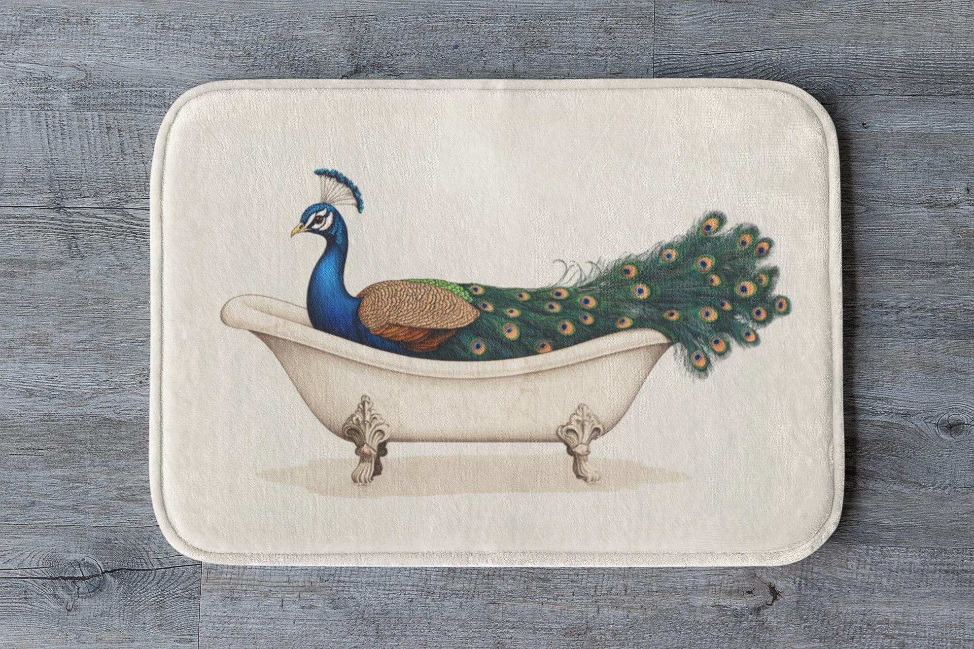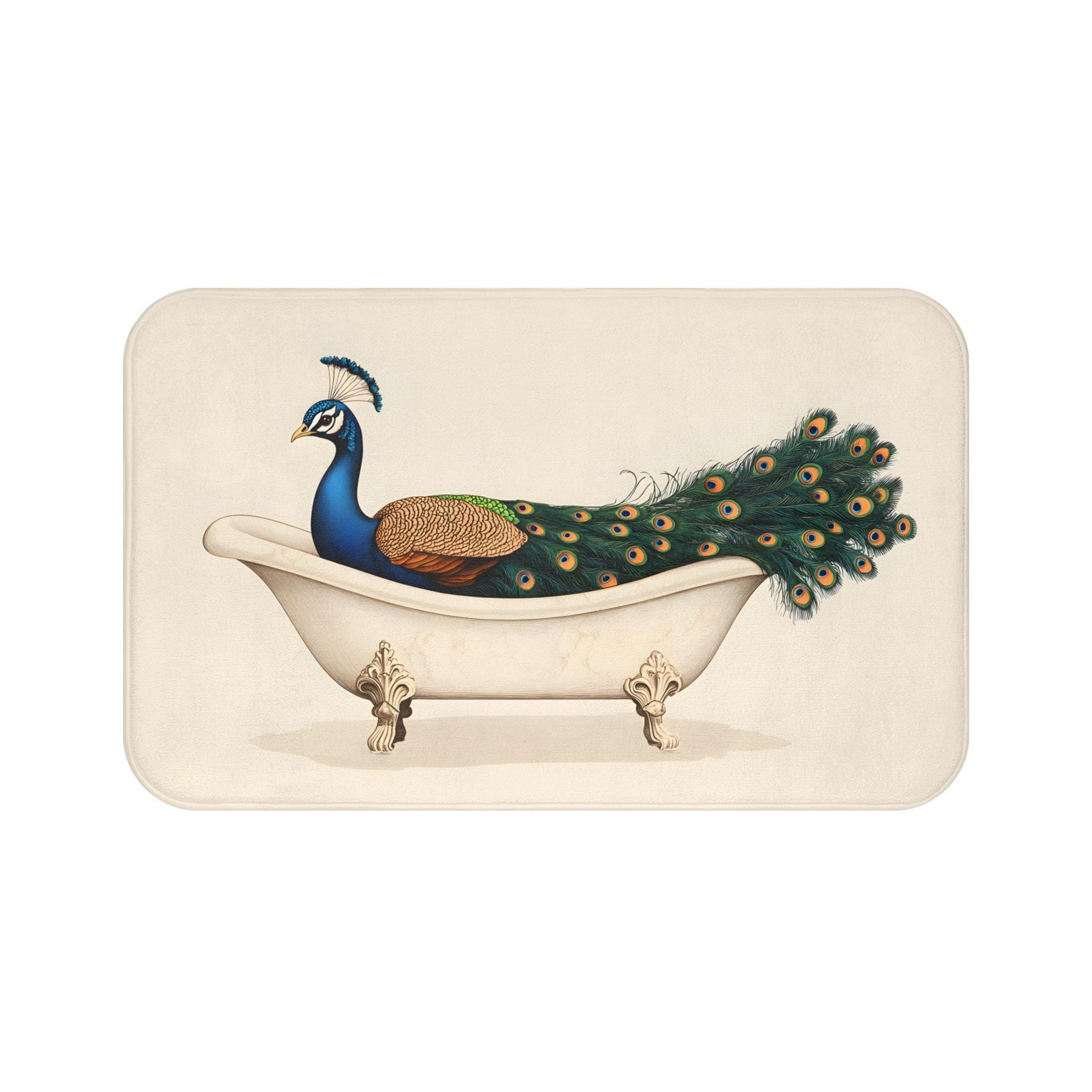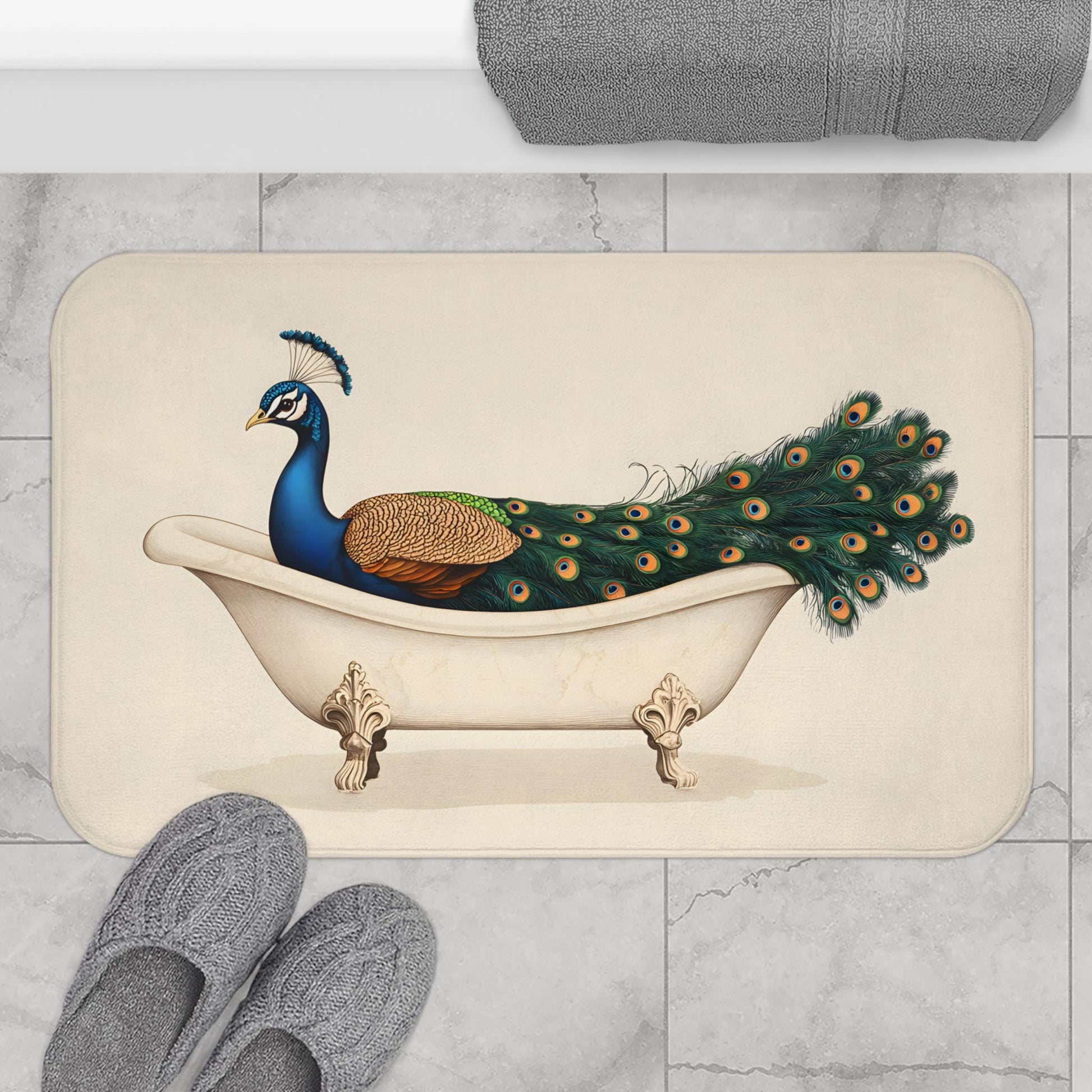 Peacock Bath Mat – Elegant Bird Bathroom Rug