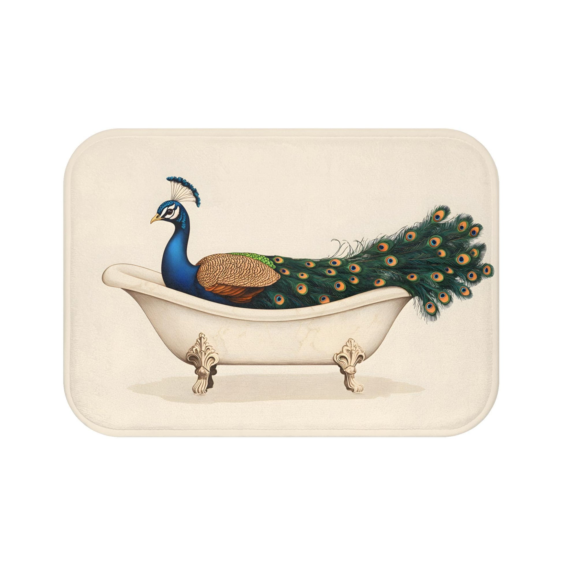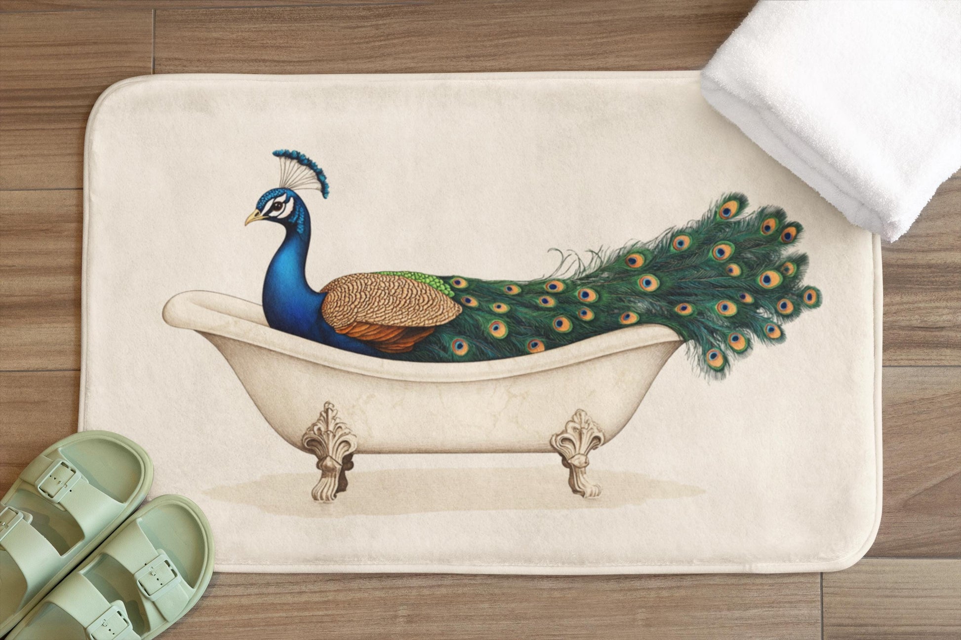 Transform your bathroom with the elegance of this peacock bath mat. Featuring rich jewel-toned feathers and a striking bird design, it brings sophistication and beauty to your decor. Perfect for bird lovers and fans of artistic, nature-inspired accents.