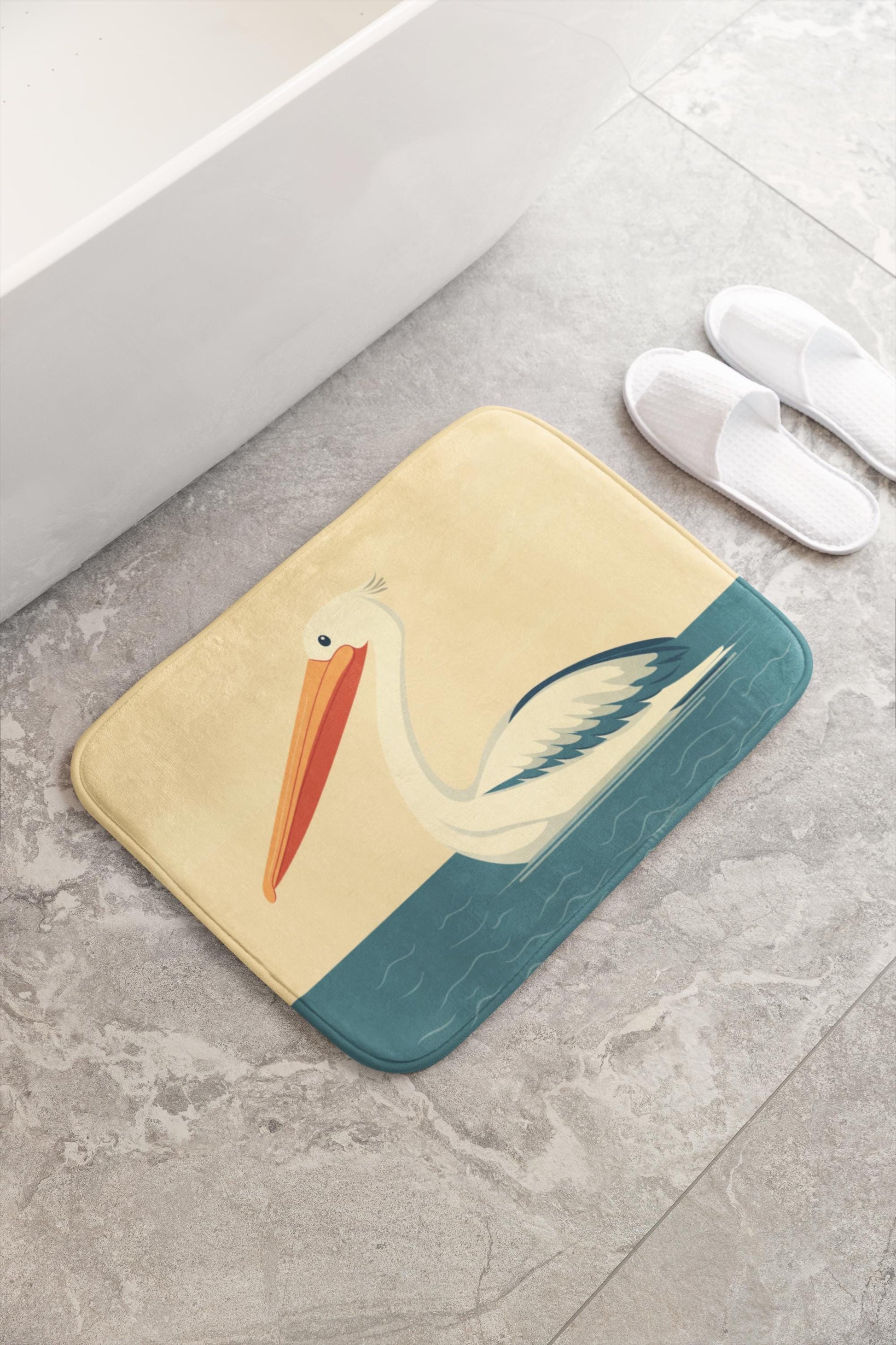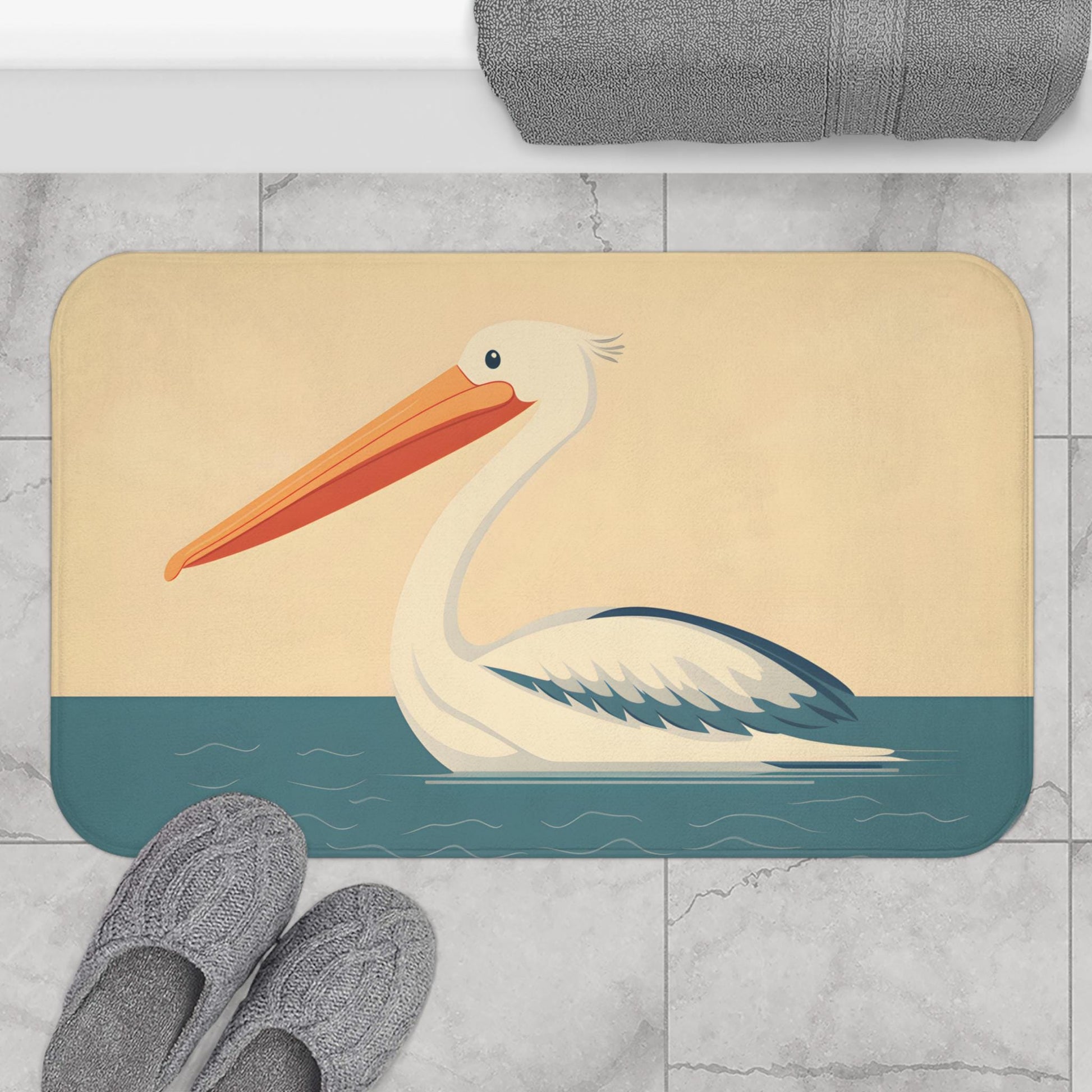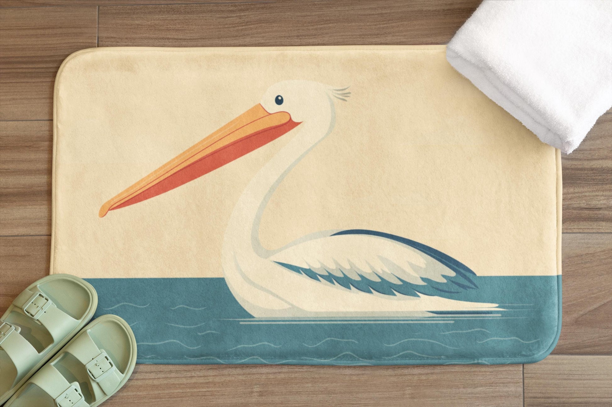 Pelican Bath Mat – Coastal Bird Bathroom Rug with Ocean Theme