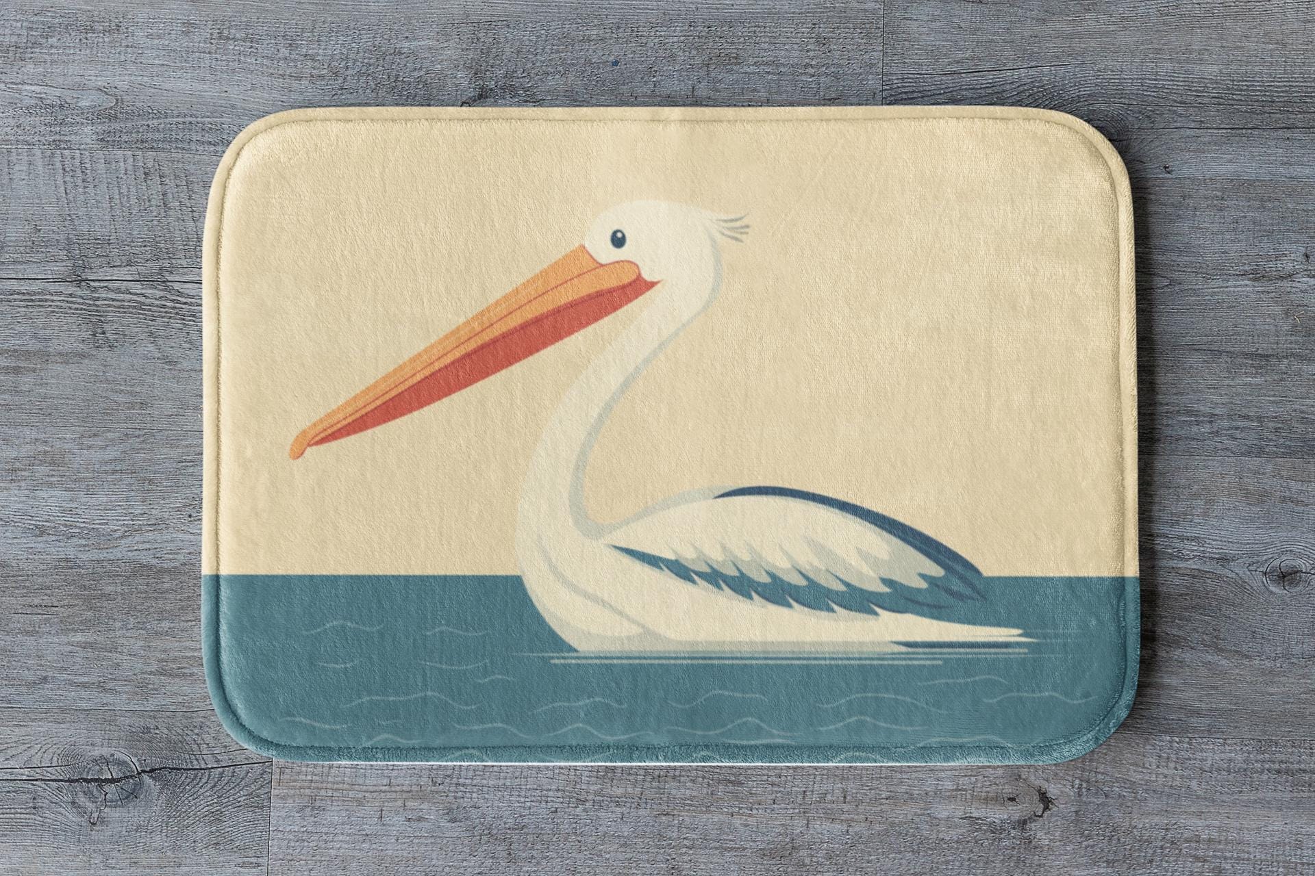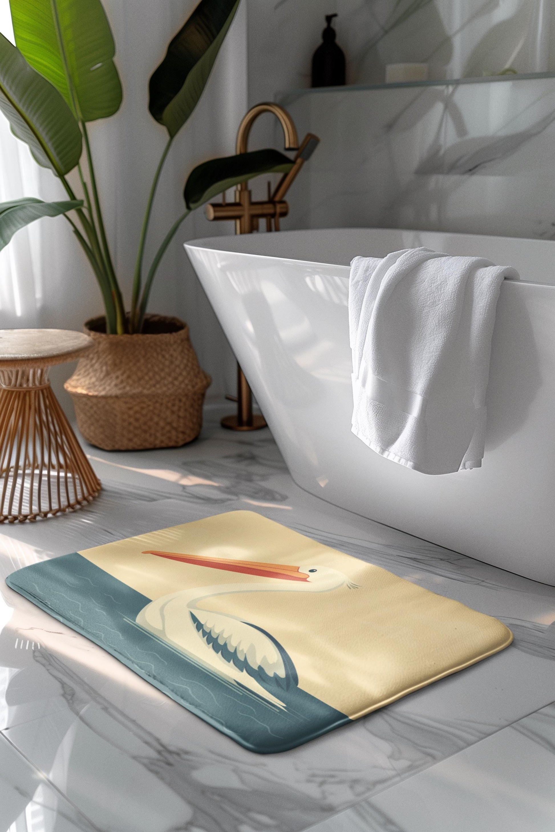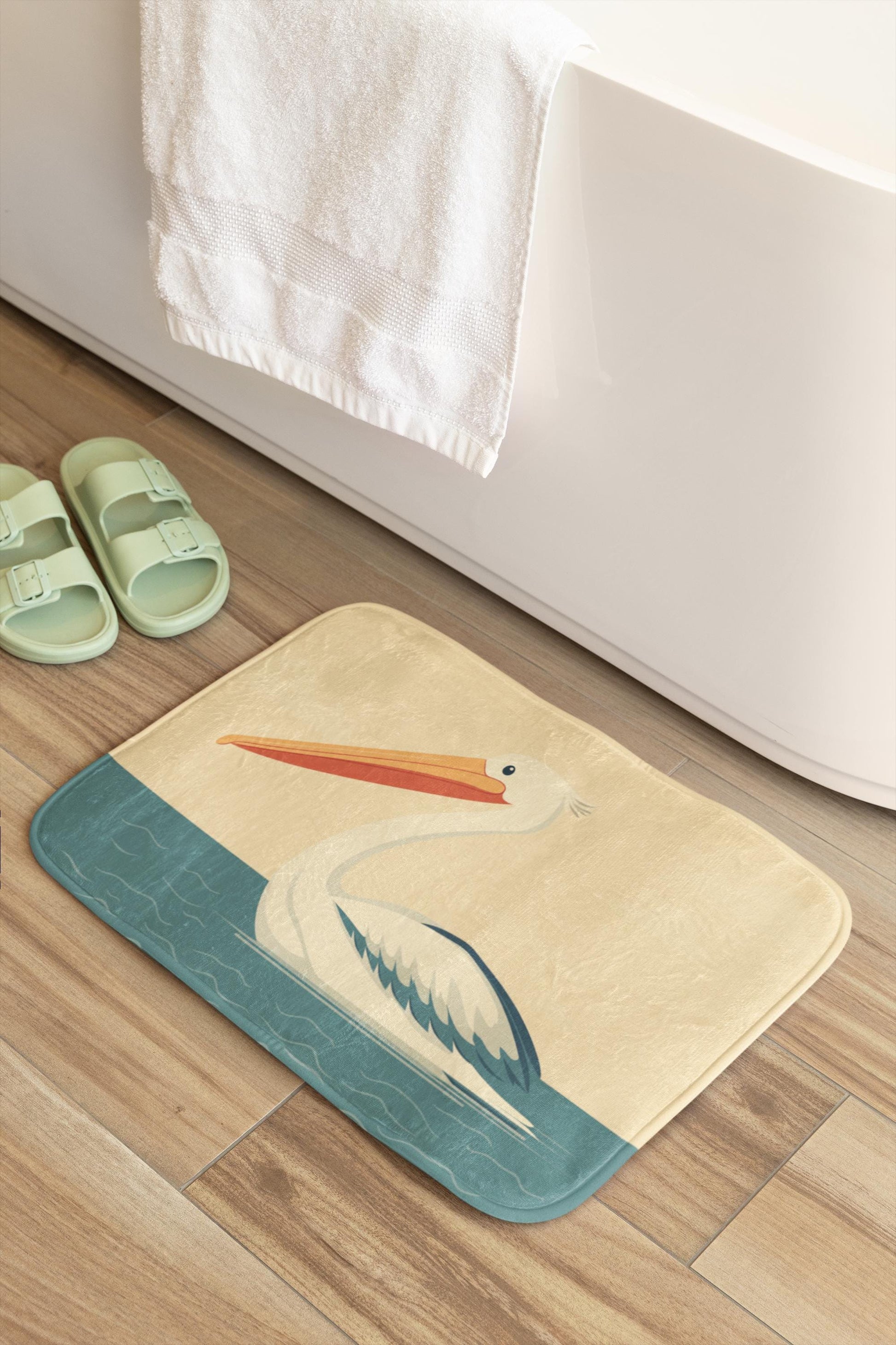 Pelican Bath Mat – Coastal Bird Bathroom Rug with Ocean Theme