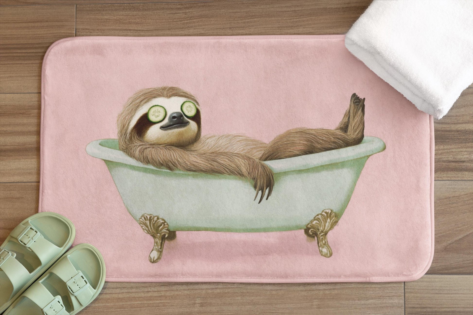 Sloth Bath Mat – Funny Animal Bathroom Rug, Self-Care Whimsical Decor & Gift