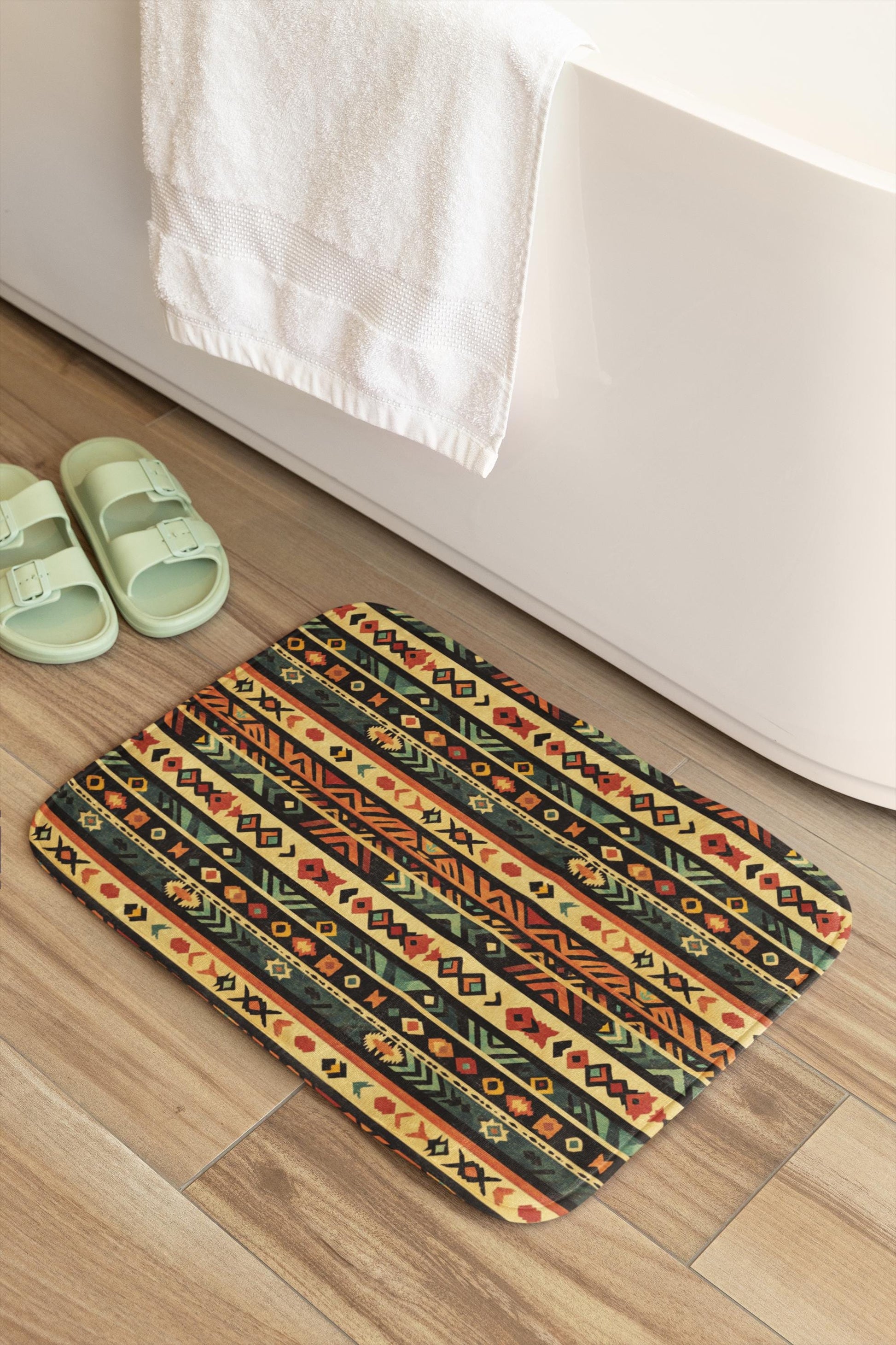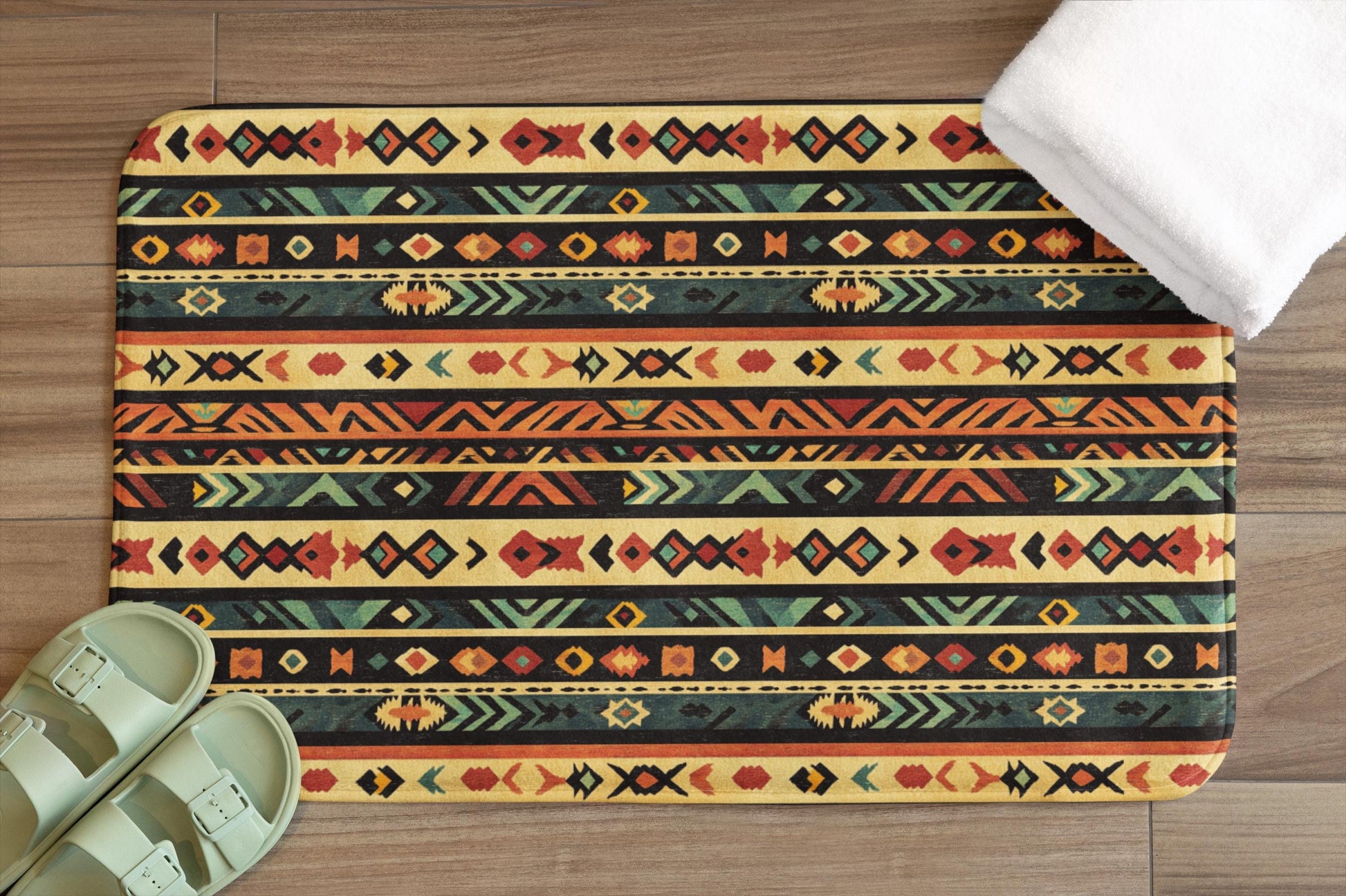 Southwestern Bath Mat – Rustic Boho Bathroom Rug with Tribal Pattern