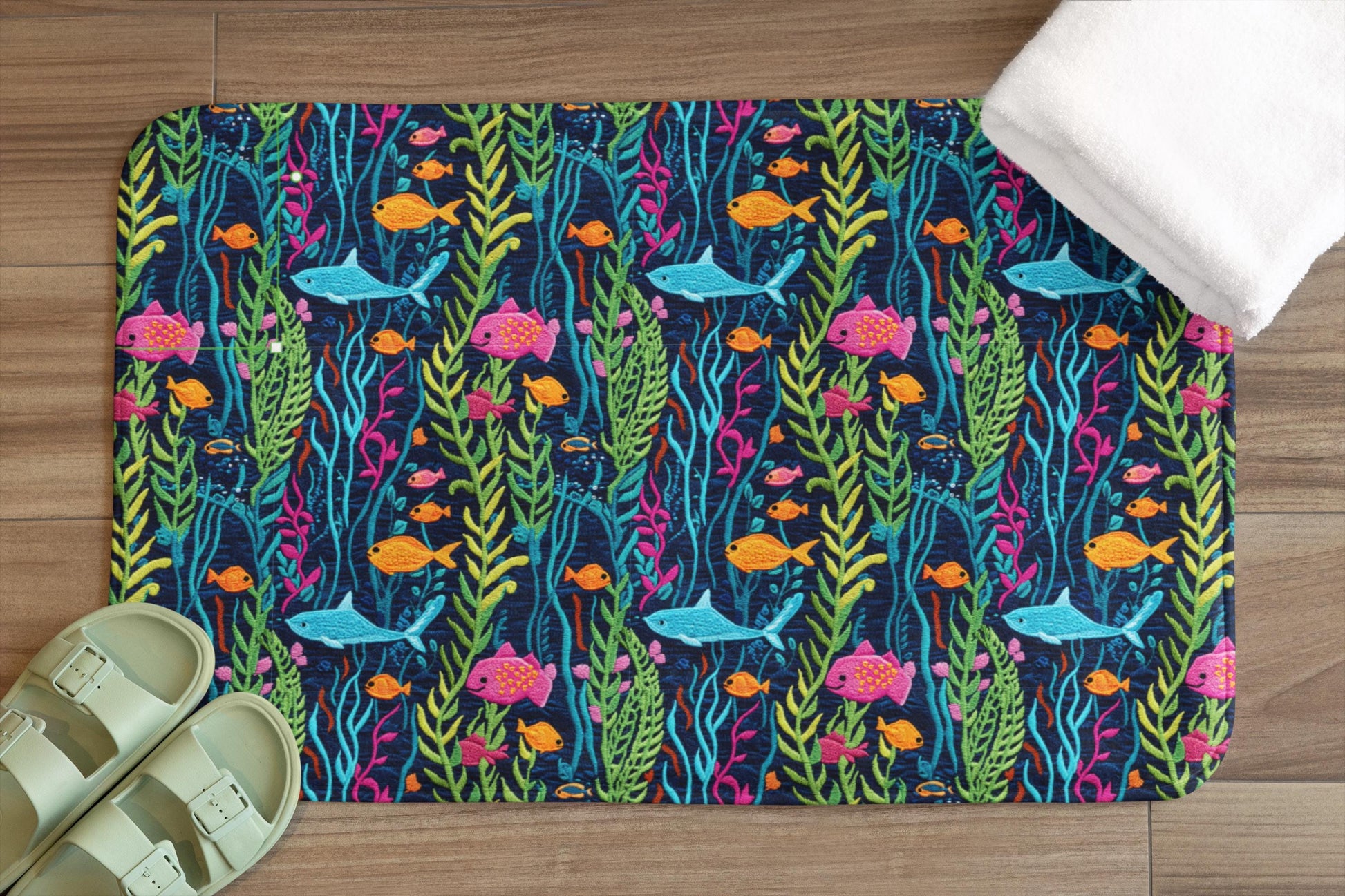Tropical Fish Bath Mat – Colorful Ocean Bathroom Rug