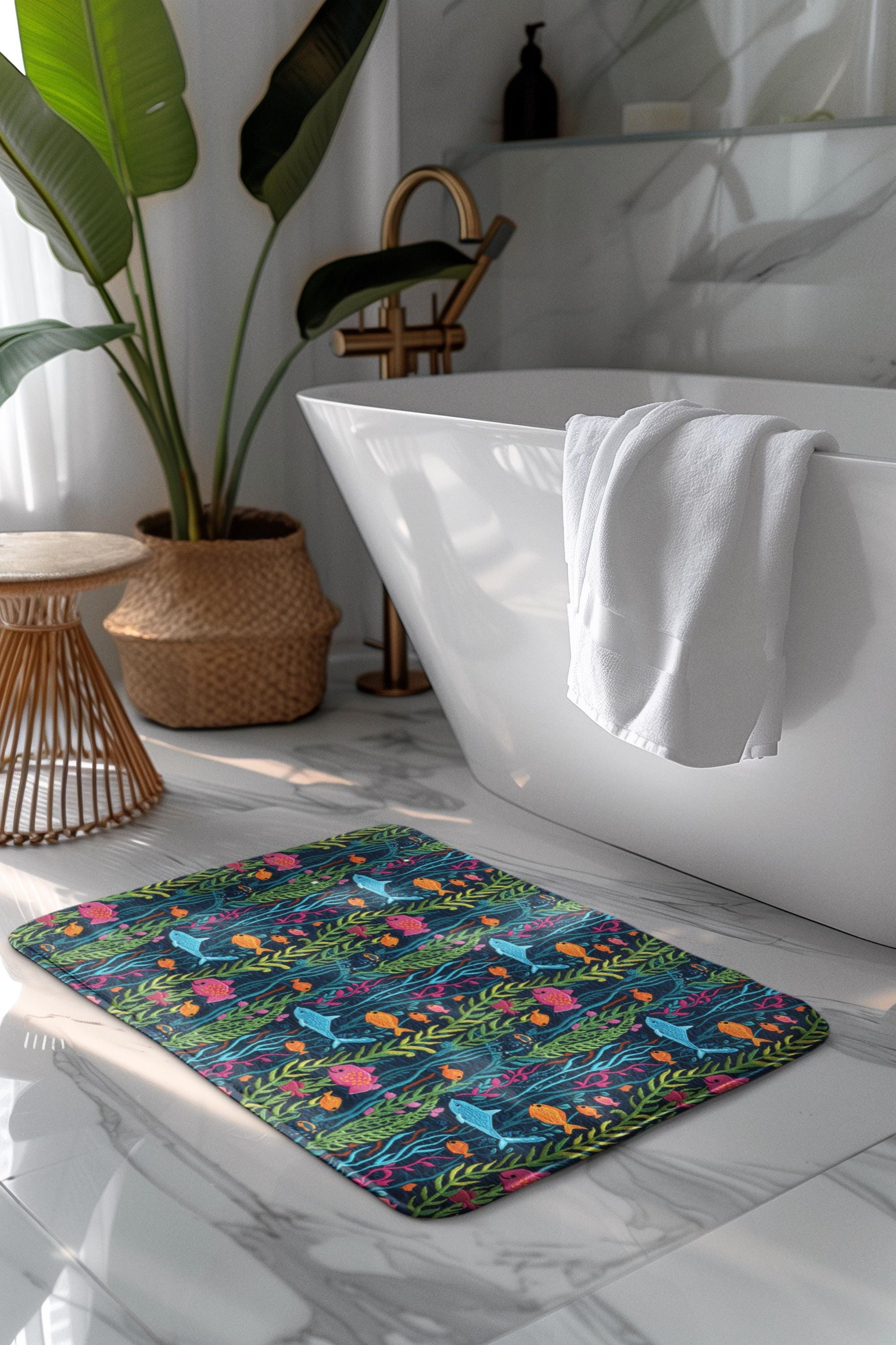 Bring the ocean to your bathroom with this tropical fish bath mat. Featuring colorful fish and a vibrant marine theme, it’s perfect for beach lovers, coastal homes, or anyone who enjoys cheerful aquatic decor. Soft, absorbent, and slip-resistant.