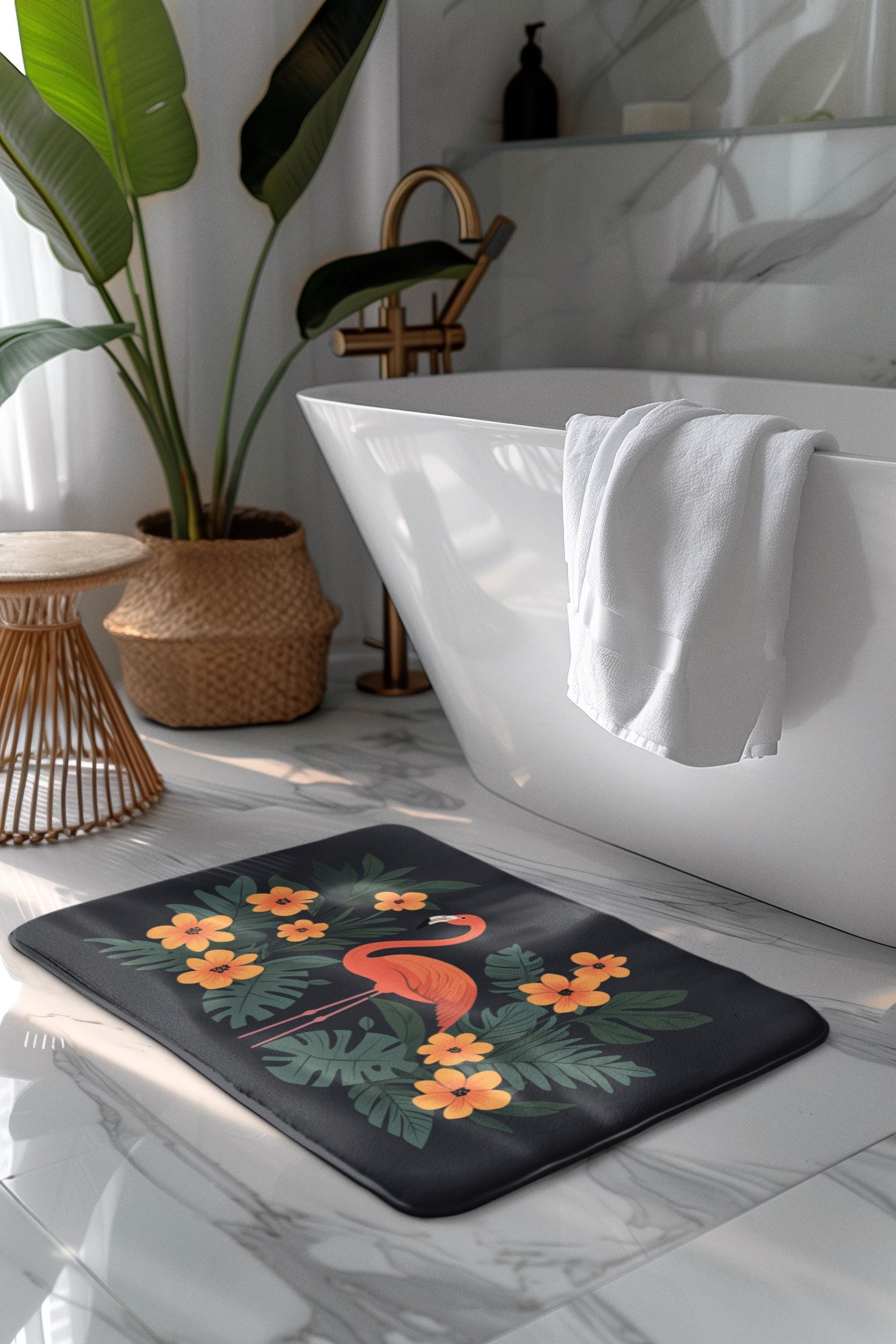 Tropical Flamingo Bath Mat – Pink Jungle Bird Bathroom Rug